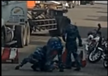 Bị phụ xe container chống đối, đạp vào mặt nên nhân viên kiểm soát cảng Cát Lái (TP.HCM) đã lôi anh này xuống đất đấm đá túi bụi.