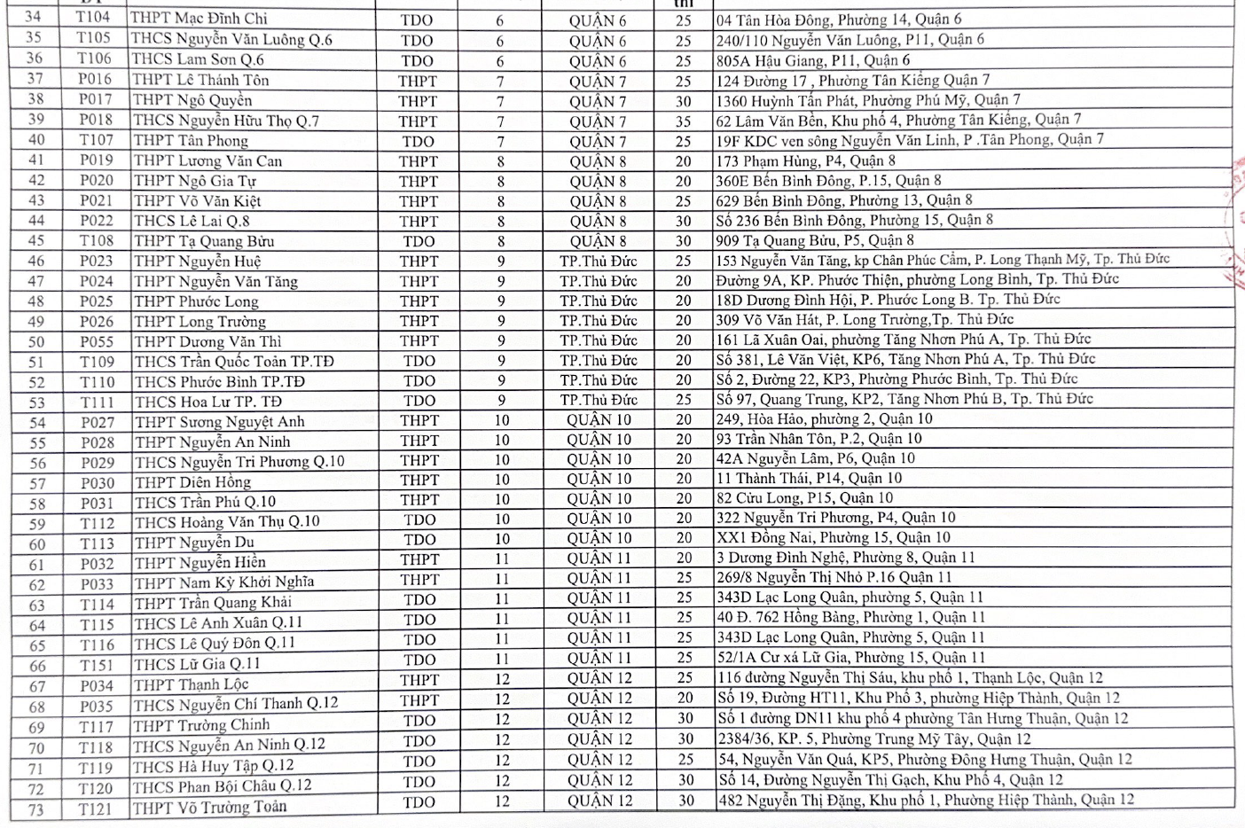 Sau đây là danh sách 156 điểm thi tốt nghiệp ở TP.HCM năm 2023: