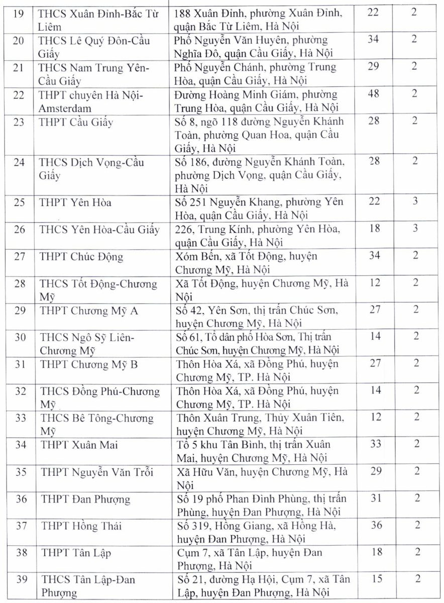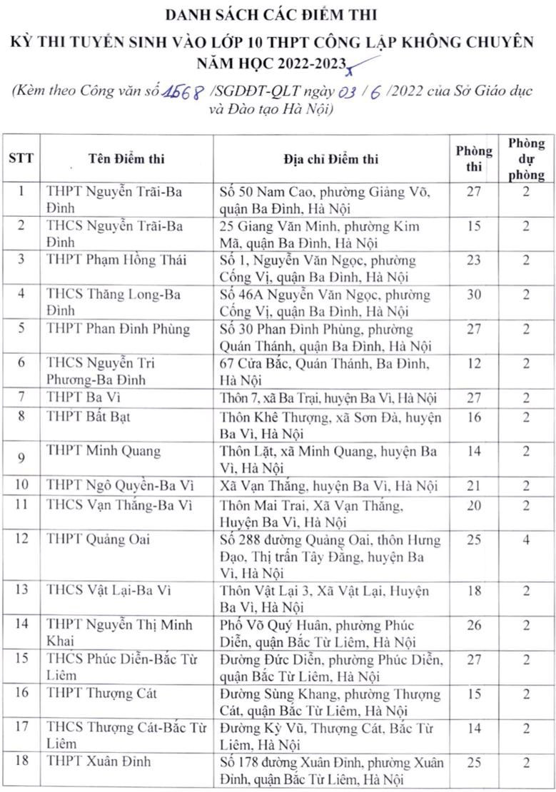 Danh sách các địa điểm tổ chức kỳ thi tuyển sinh vào lớp 10 THPT chuyên và không chuyên tại Hà Nội cụ thể như sau: