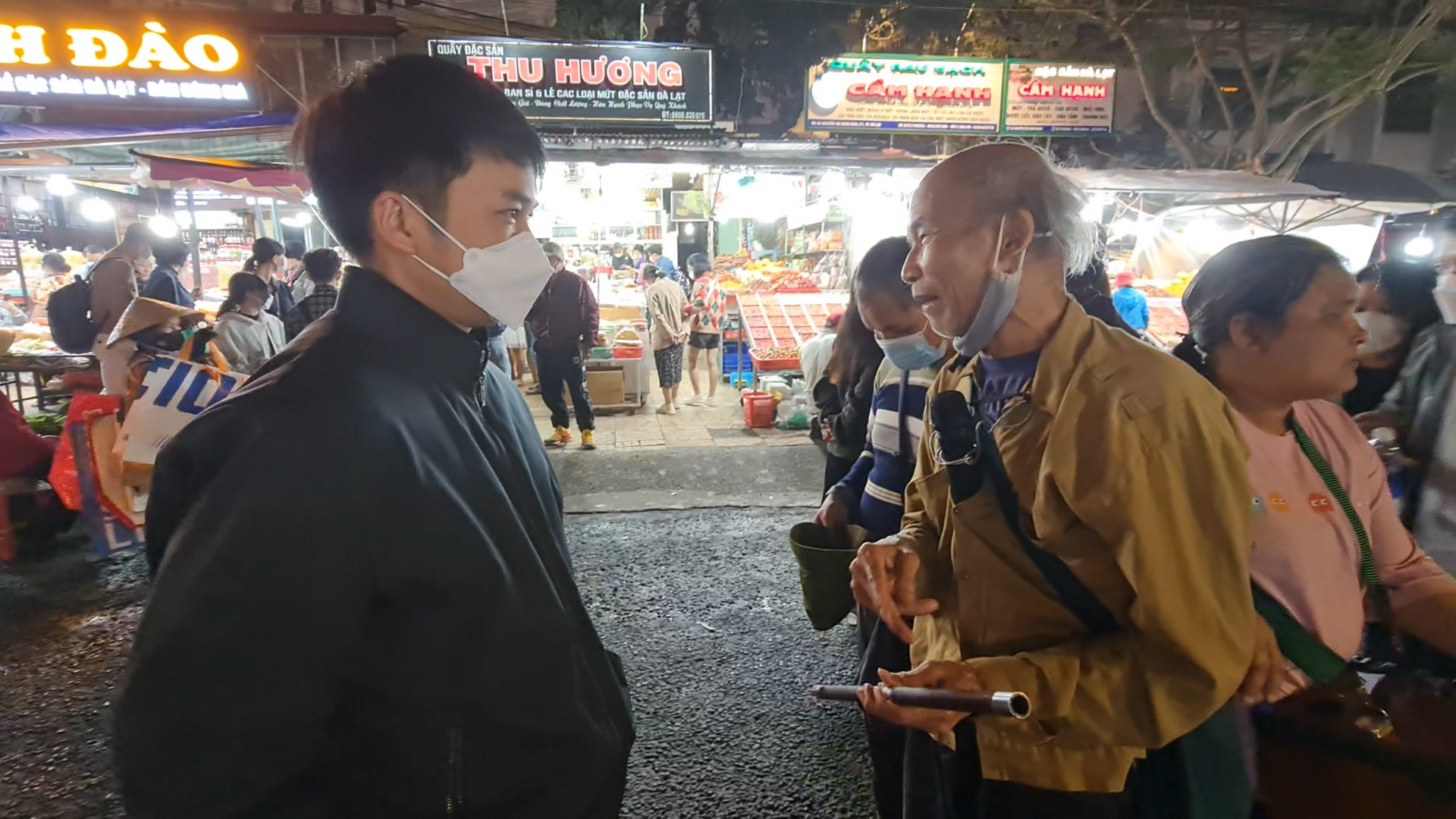 Hai ngày qua, cư dân mạng truyền tay nhau đoạn clip ghi lại hình ảnh nam du khách thổi sáo ở vỉa hè chợ đêm Đà Lạt (Lâm Đồng) với mục đích xin tiền giúp một cụ ông. Tiếng sáo ấn tượng của nam du khách này khiến những người xung quanh chú ý, dừng lại lắng nghe và tặng tiền cho ông cụ.