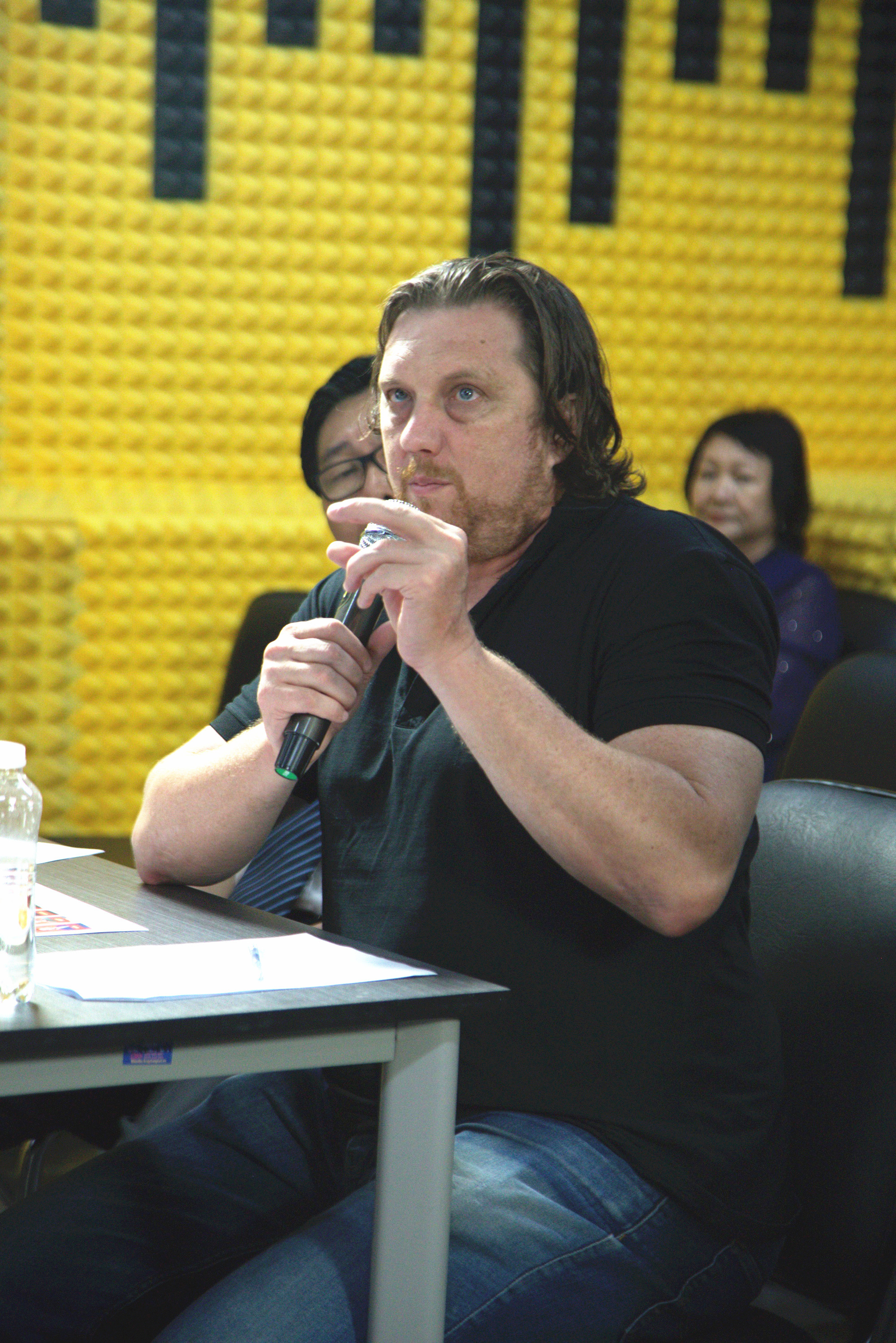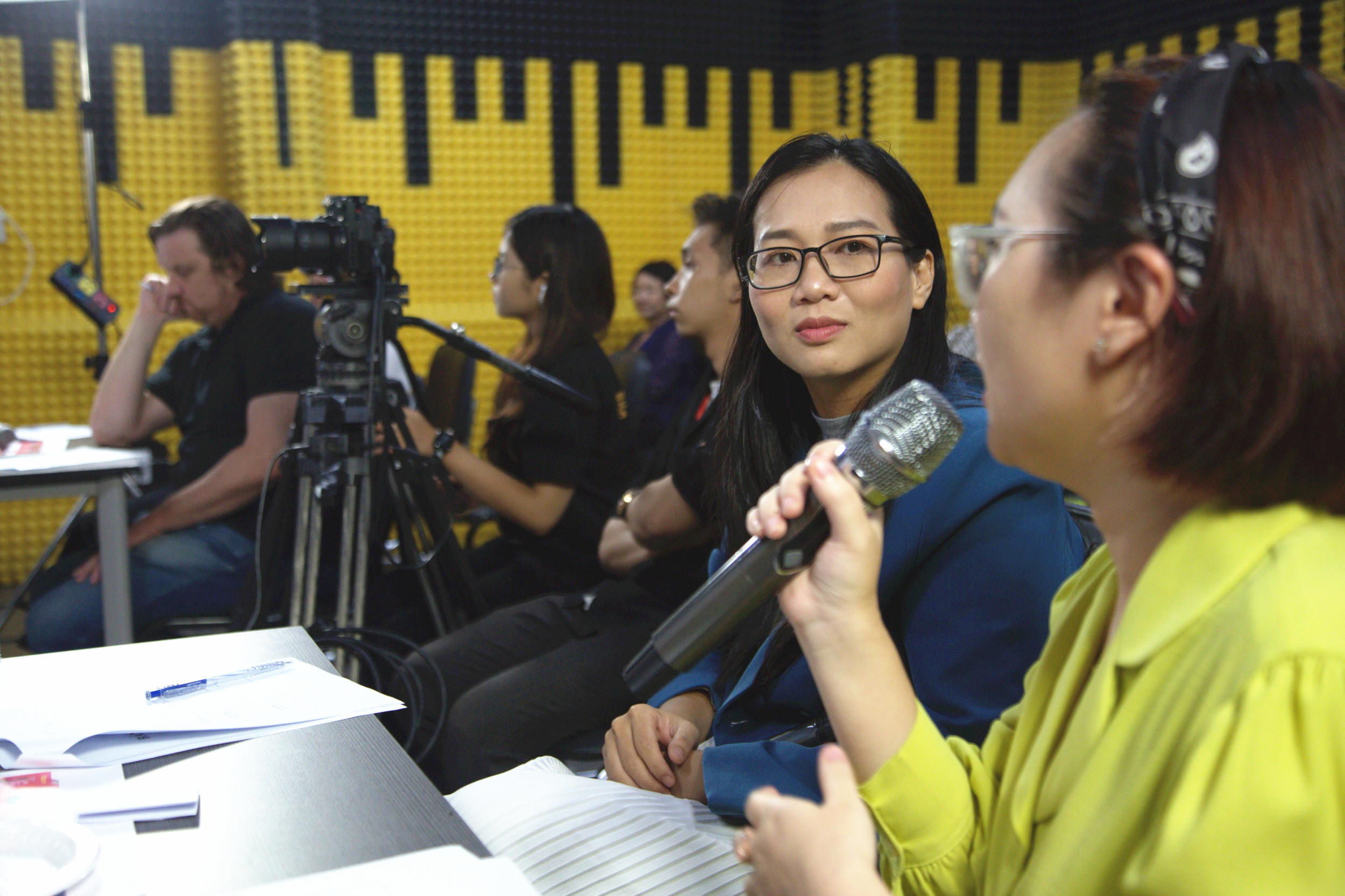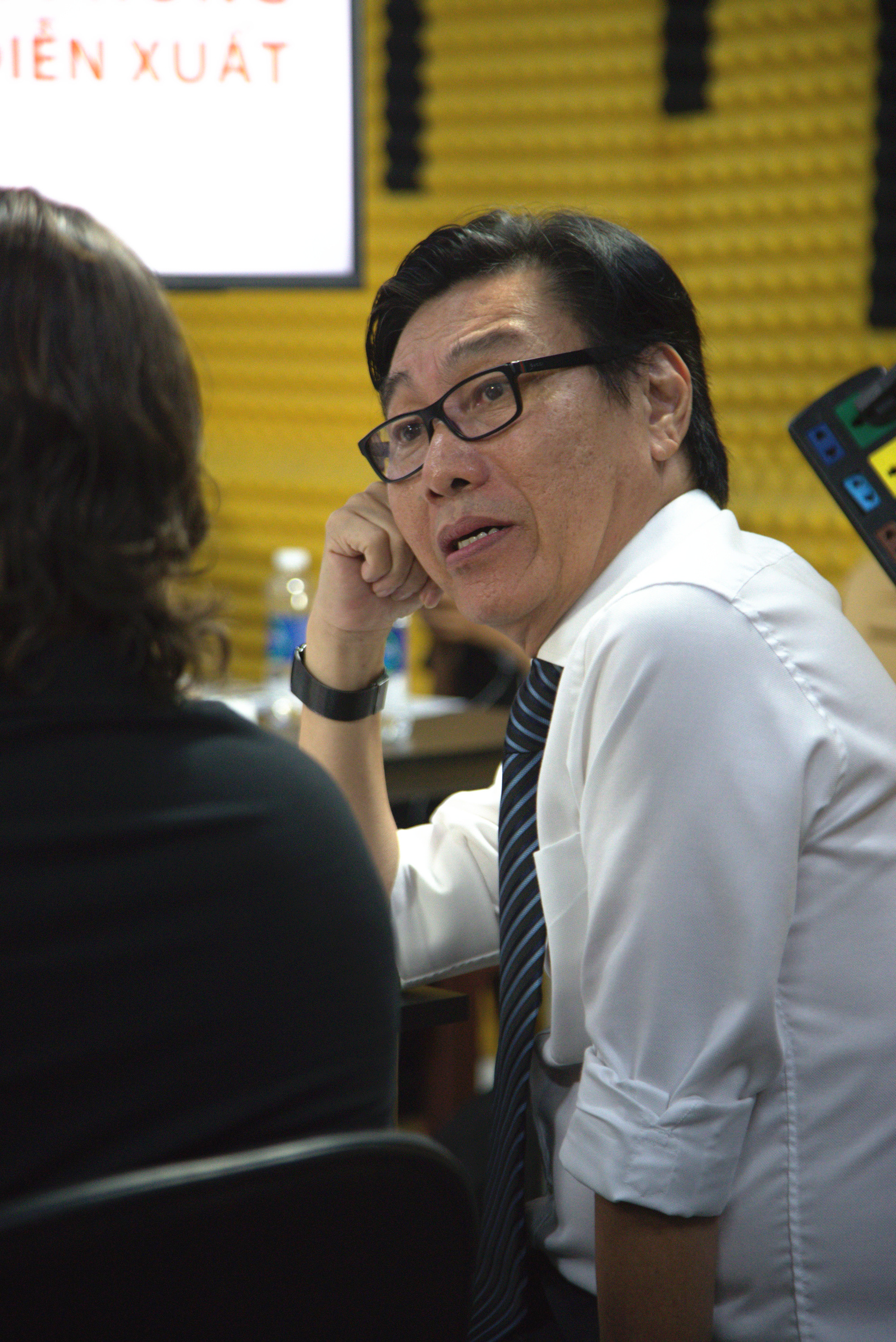 Aaron Toronto và Lý Thu Uyên - đạo diễn và nhà sản xuất phim 'Đêm tối rực rỡ' vừa tổ chức buổi dạy diễn xuất cho diễn viên Hồ Quang Mẫn, nhóm hài Saigon Tếu...