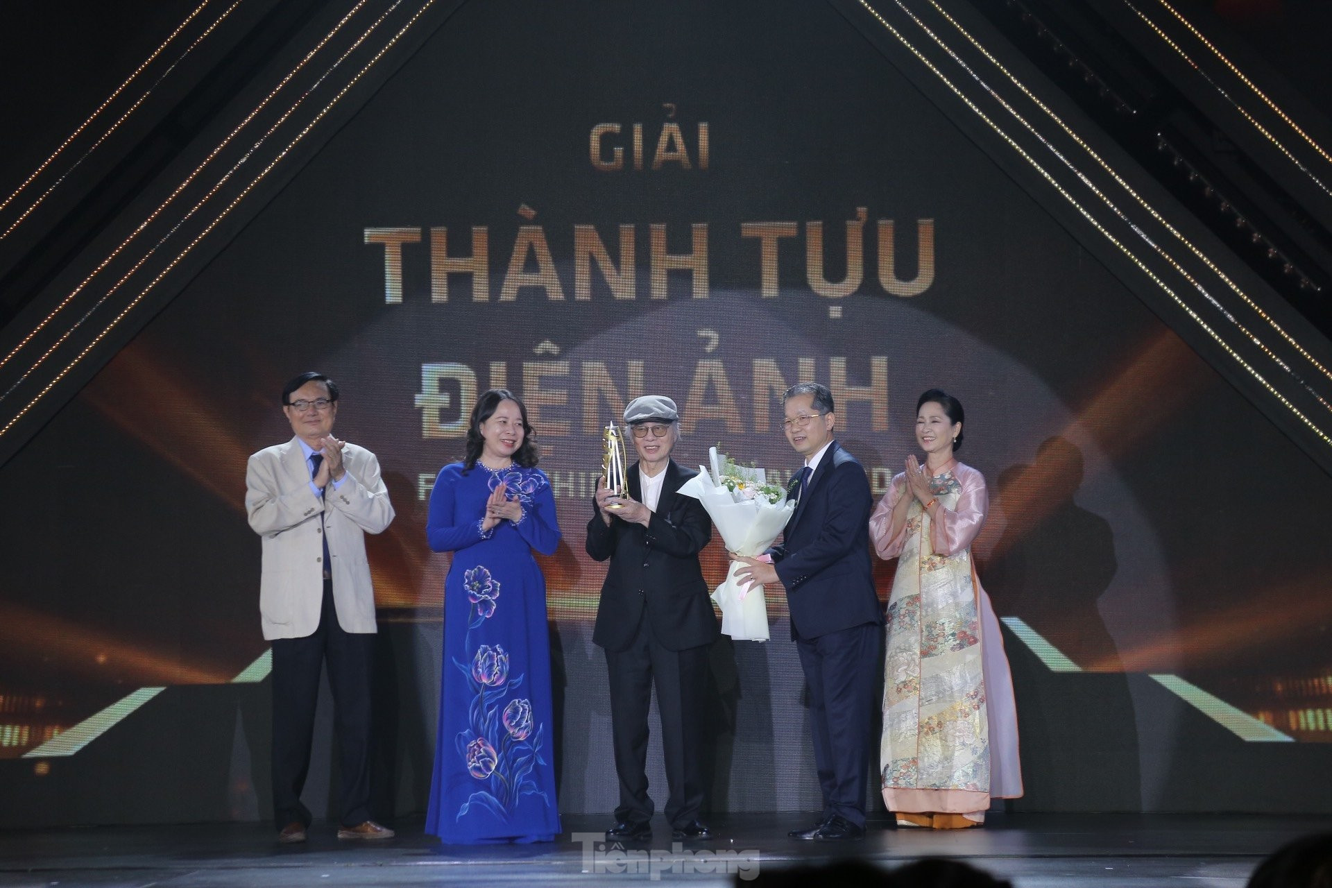 Mở đầu là lễ vinh danh đạo diễn, NSND Đặng Nhật Minh với giải Thành tựu Điện ảnh do Phó Chủ tịch nước Võ Thị Ánh Xuân trao tặng. NSND Đặng Nhật Minh năm nay 86 tuổi, là đạo diễn bậc thầy của Việt Nam. |