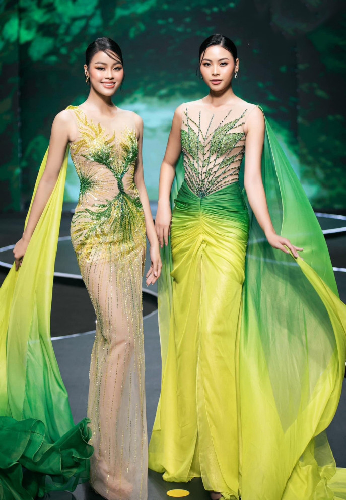 Đào Hà và Đào Hiền - cặp chị em gái thời gian qua nhận nhiều sự quan tâm của truyền thông và khán giả. Cả hai vừa mở màn bộ sưu tập Catchy của nhà thiết kế Võ Thanh Can tại sự kiện Vietnam Beauty Fashion Fest 5.