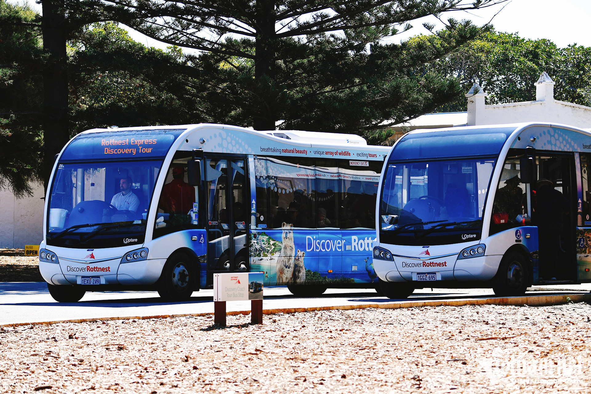 Trên đảo Rottnest không có ô tô nhưng bù lại có dịch vụ xe điện chuyên chở du khách.