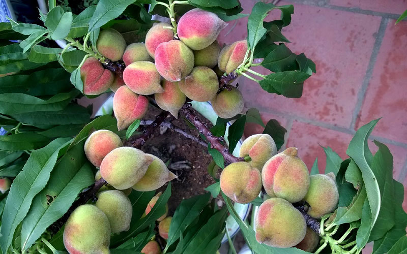 Mặc dù chỉ trồng để chơi hoa là chính, song, năm nào vườn đào thất thốn trên sân thượng tầng 3 của anh Nam Hải (Tam Thanh, TP. Lạng Sơn) cũng sai trĩu quả.