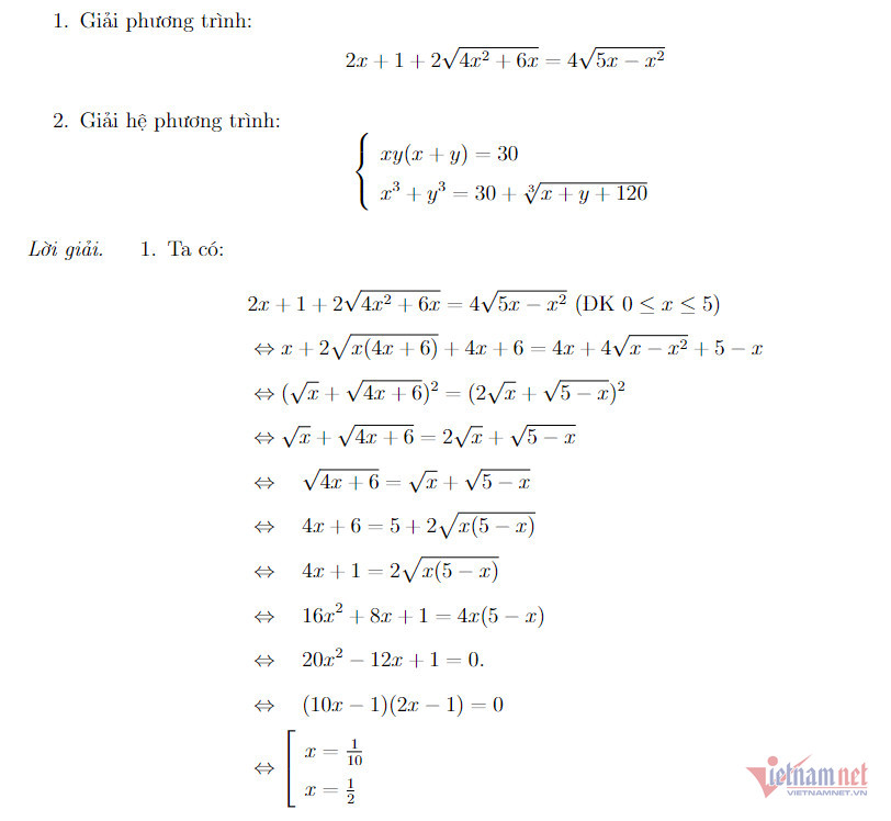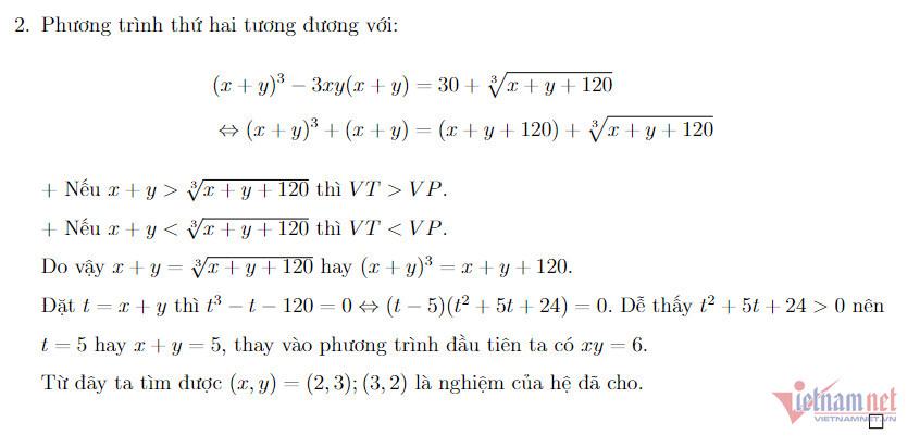 Đáp án tham khảo đề chuyên Toán vào lớp 10 trường chuyên Sư phạm