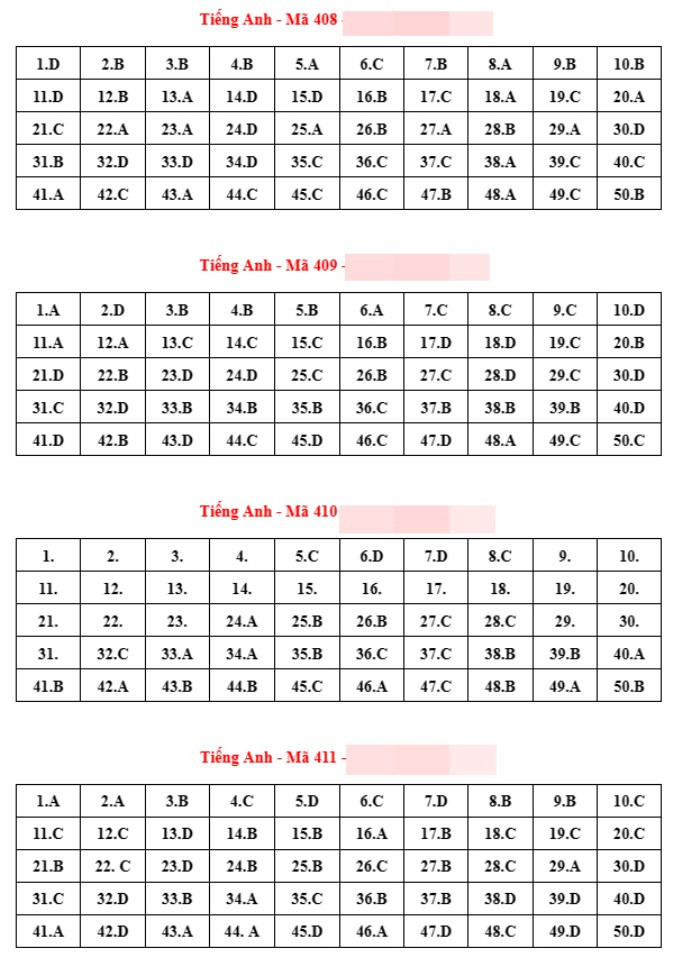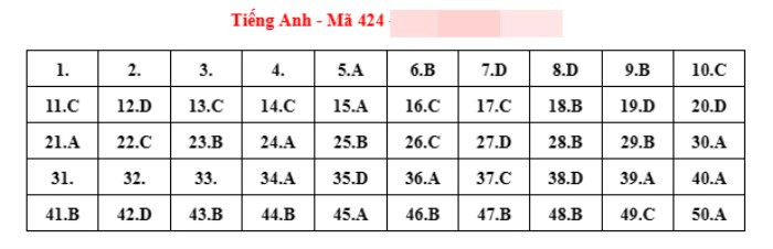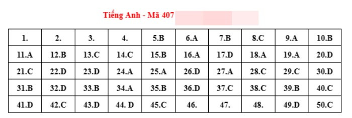 Dưới đây là đáp án tham khảo do Ban chuyên môn Tuyensinh247 thực hiện. Thí sinh có thể tham khảo thêm gợi ý đáp án các mã đề khác tại đây.