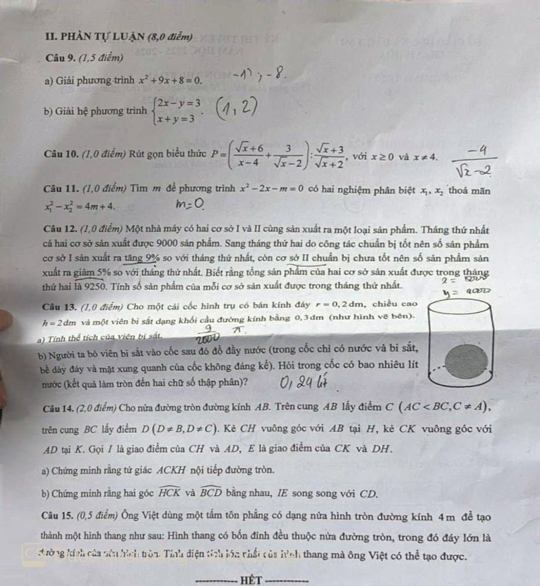 Đề môn Toán thi lớp 10 tỉnh Thanh Hóa năm 2025 với thời gian làm bài 120 phút như sau: