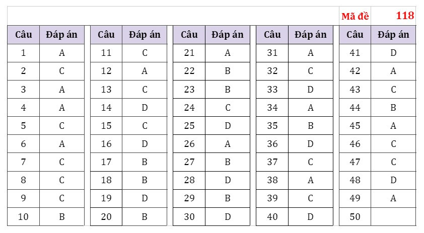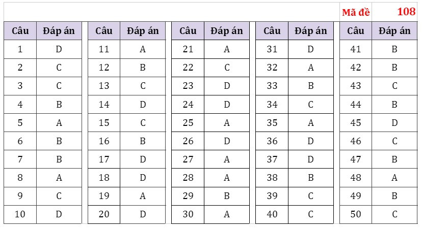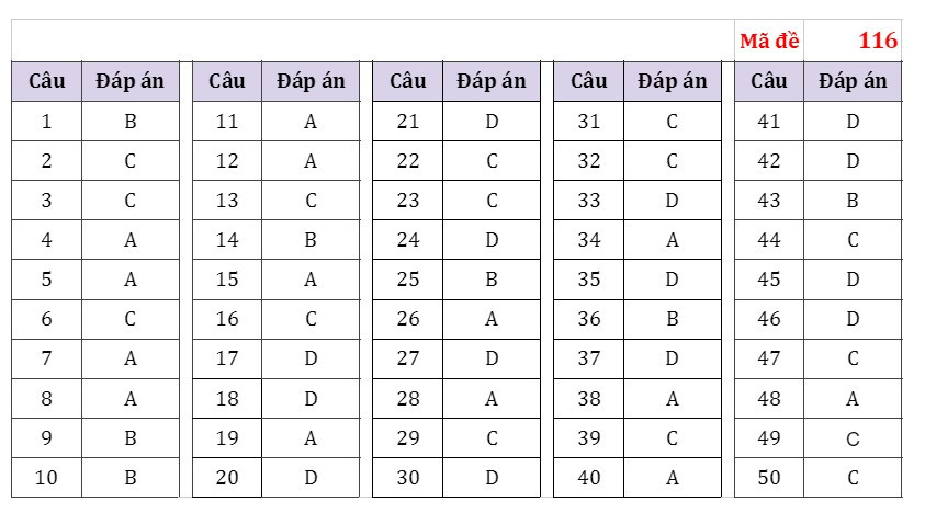 Đáp án tham khảo môn Toán thi tốt nghiệp THPT năm 2024 - 24 mã đề