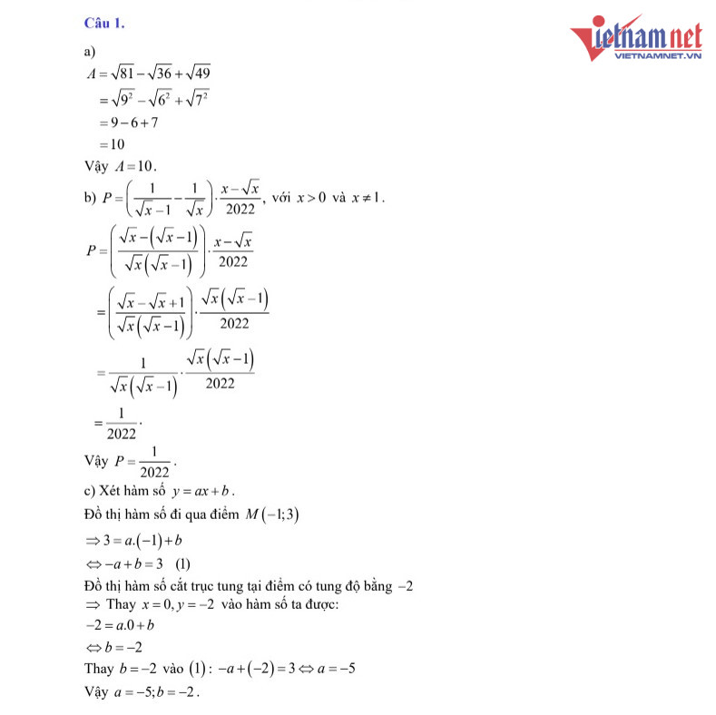 Dưới đây là đáp án tham khảo môn Toán thi vào lớp 10 ở Nghệ An năm 2022 do các thầy cô của Hệ thống giáo dục Hocmai thực hiện: