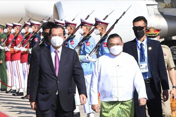 Thủ tướng Campuchia Hun Sen trở thành lãnh đạo nước ngoài đầu tiên tới thăm Myanmar sau thời điểm chính biến, để hội đàm với lãnh đạo chính quyền quân sự nước này trong hôm nay (7/1).