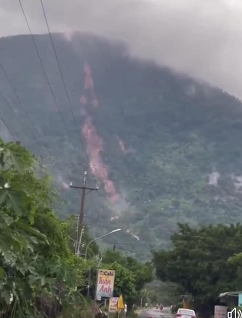 | Đất đá trên núi Bà Đen sạt lở xuống chân núi vào chiều 14/11 |