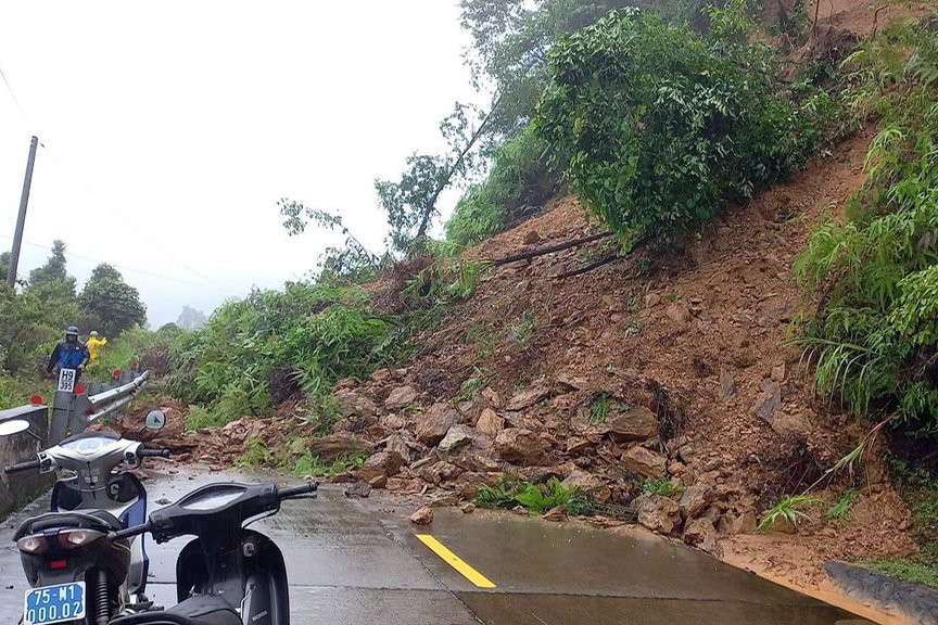 Tại huyện miền núi A Lưới, chính quyền địa phương cho biết, đã xảy ra tình trạng sạt lở đất trên đường mòn Hồ Chí Minh tại Km H9-395 dài khoảng 25m, giao thông bị tê liệt.