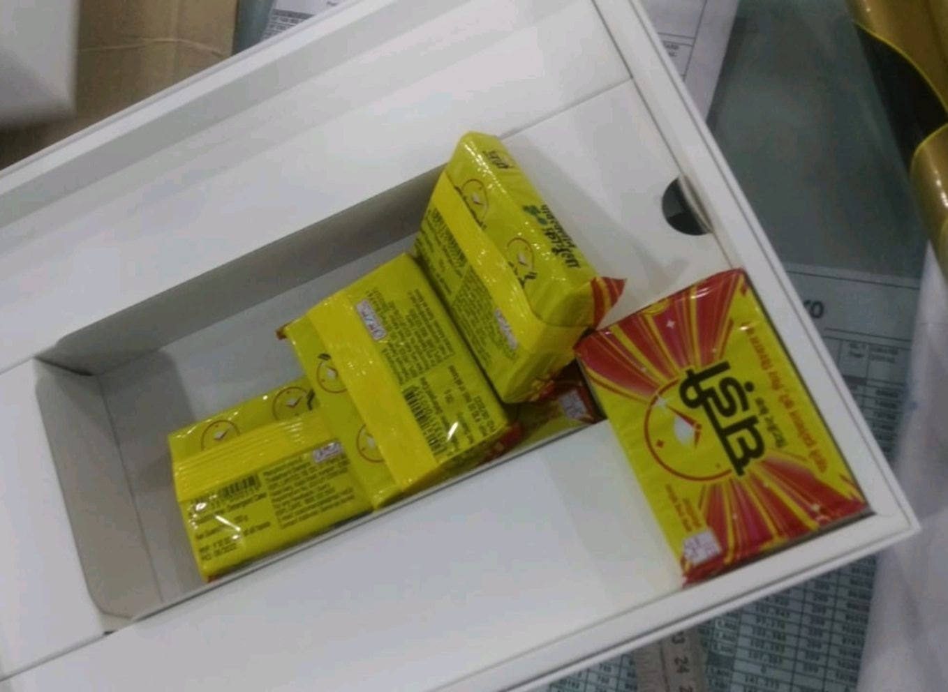 Thay vào đó, cha của Sharma chỉ nhận gói hàng và chờ cho đến khi anh về nhà mới bắt đầu mở ra để kiểm tra bên trong. Sau khi mở gói hàng, cả 2 đã ngỡ ngàng khi nhận ra bên trong không phải là chiếc laptop mà Sharma đã đặt mua, thay vào đó những cục xà phòng xếp ngay ngắn, với giá trị thấp hơn nhiều một chiếc laptop.