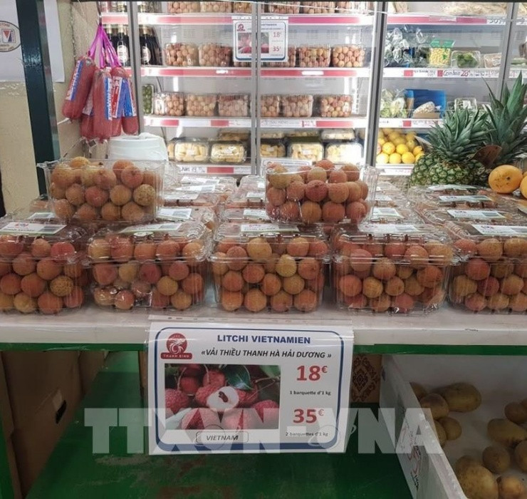 Còn ở Pháp, những lô vải thiều Thanh Hà gắn tem truy xuất nguồn gốc đã chính thức có mặt tại hệ thống siêu thị châu Á tại Paris từ tháng 6/2021. Pháp cũng là một trong những thị trường khó tính.