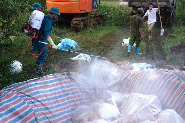 Lực lượng chức năng tỉnh Thanh Hóa cùng với trại giam số 5 và công ty Thái Dương đã thu gom số lợn chết đến nơi chôn lấp.