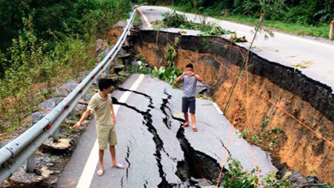 Quốc lộ nghìn tỷ bị xé toạc, sụt sâu cả tảng sau mưa lũ