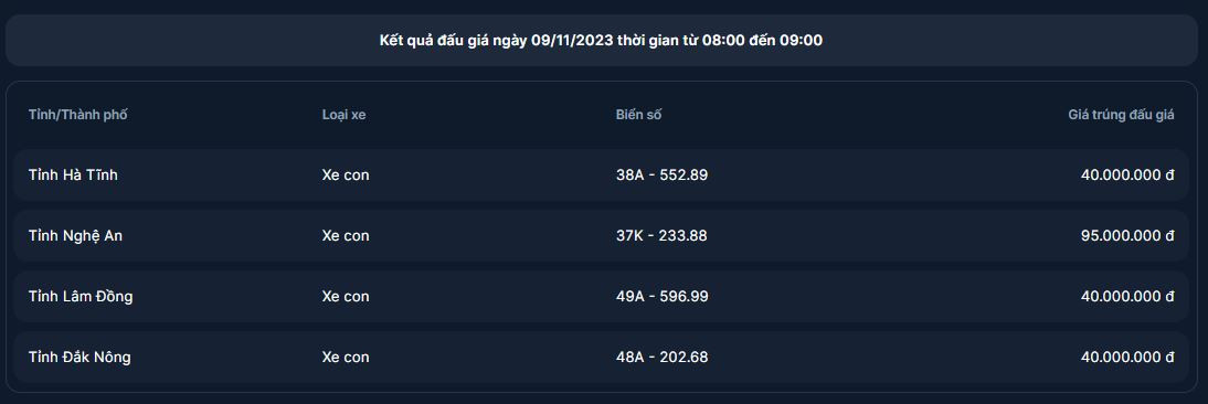 Kết quả đấu giá biển số khung giờ 8h00-9h00.