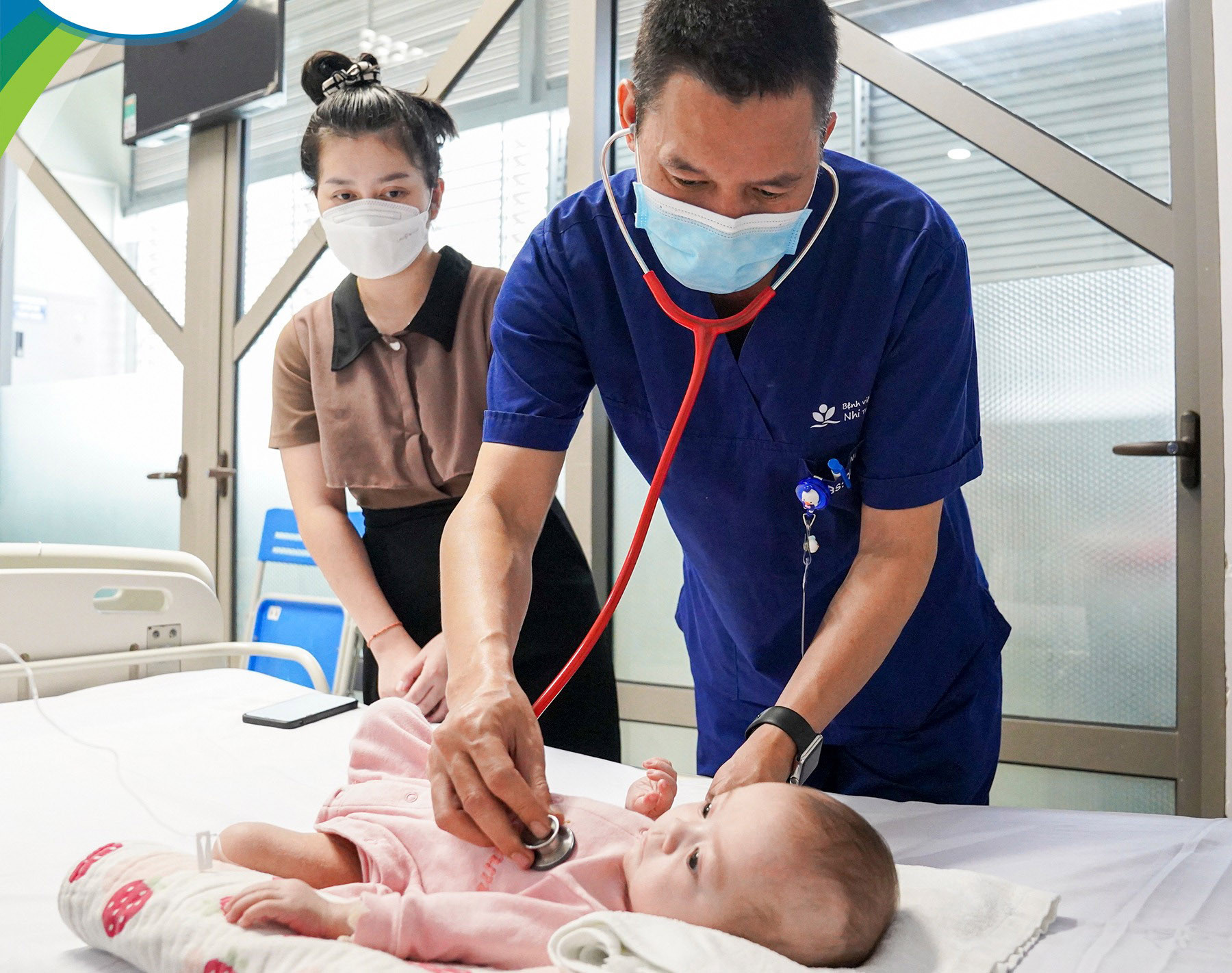 Tuy nhiên mẹ bệnh nhi quan sát thấy con thở khò khè. Đặc biệt khi khóc miệng con tím vì vậy trẻ được thực hiện thăm khám chuyên sâu hơn. Sau khám chuyên sâu, bác sĩ phát hiện trẻ mắc tim bẩm sinh.