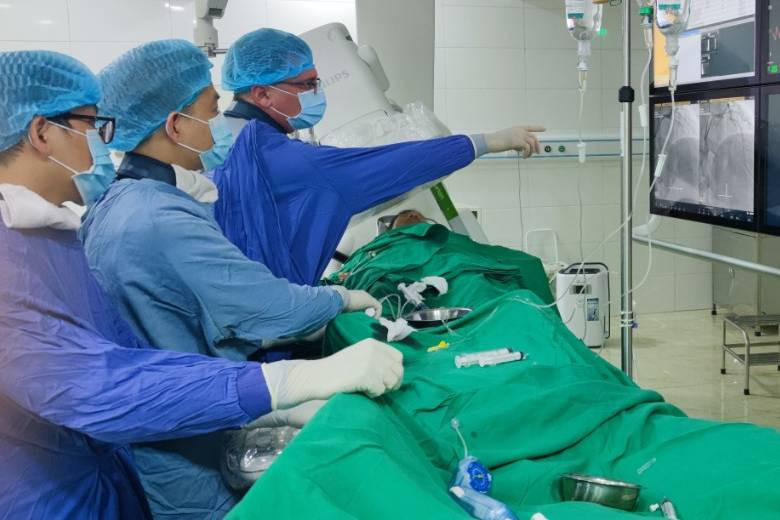 Bị nhồi máu cơ tim cấp, ông H. nhanh chóng được các bác sĩ đưa vào phòng can thiệp tim mạch nhưng tại đây ông liên tiếp ngừng tim.
