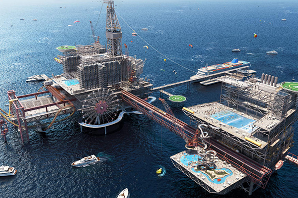 Khu giải trí, nghỉ dưỡng độc nhất thế giới trên giàn khoan khổng lồ ở Vịnh Ả Rập