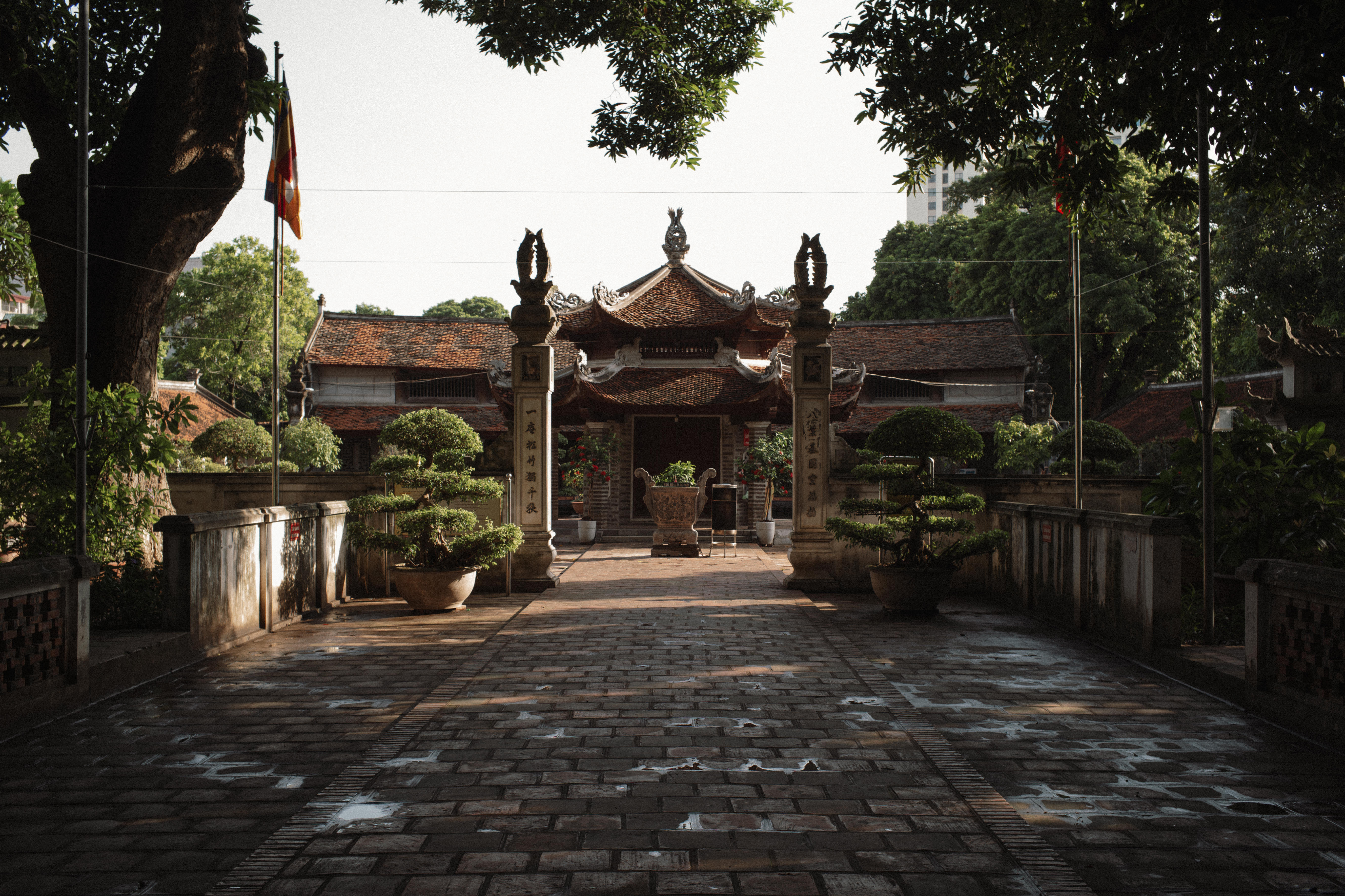 Chùa Láng có ba lớp tam quan mang nét nghệ thuật của thời Lý.