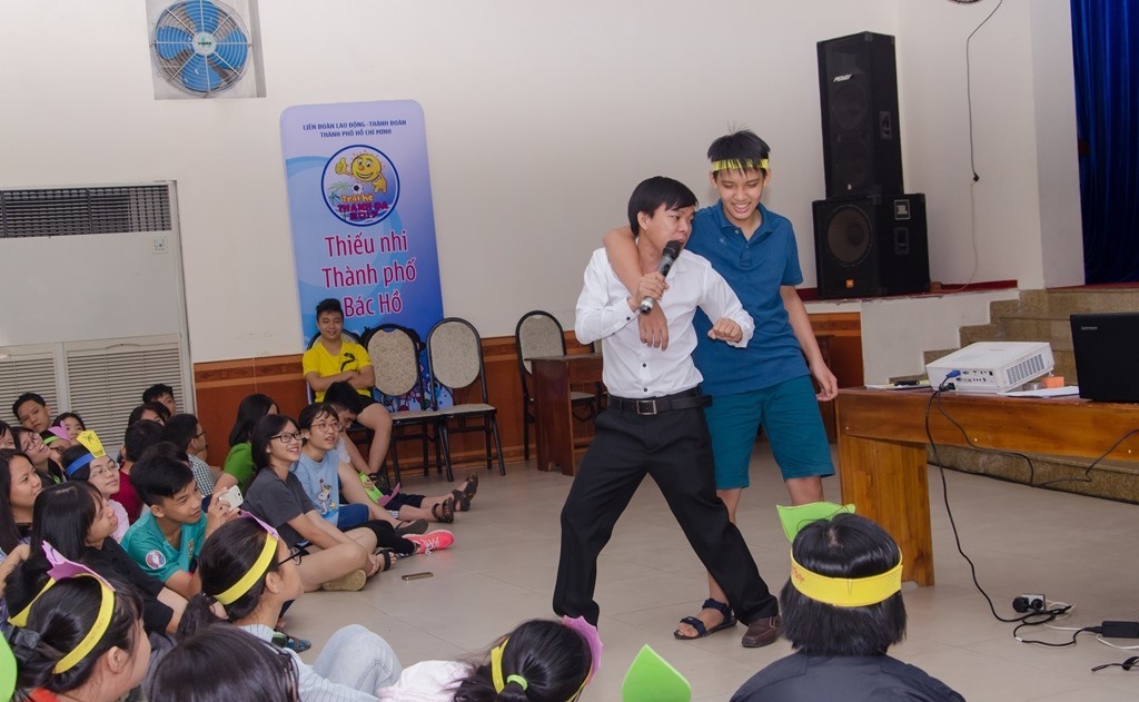 | Trong một chương trình nói chuyện về phòng chống xâm hại với học sinh, ThS Huân chỉ cách cho các bạn xử lý khi bị tấn công, xâm hại. Ảnh: Nguyễn Lâm |