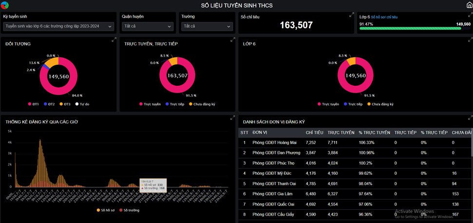 Theo thống kê tại cổng thông tin tuyển sinh của Sở GD-ĐT Hà Nội đến 24h ngày 9/7, thành phố có 149.560 hồ sơ đăng ký tuyển sinh trực tuyến thành công vào lớp 6, chiếm 91,47% trong tổng số 163.507 chỉ tiêu tuyển sinh lớp 6 năm học 2023-2024.
