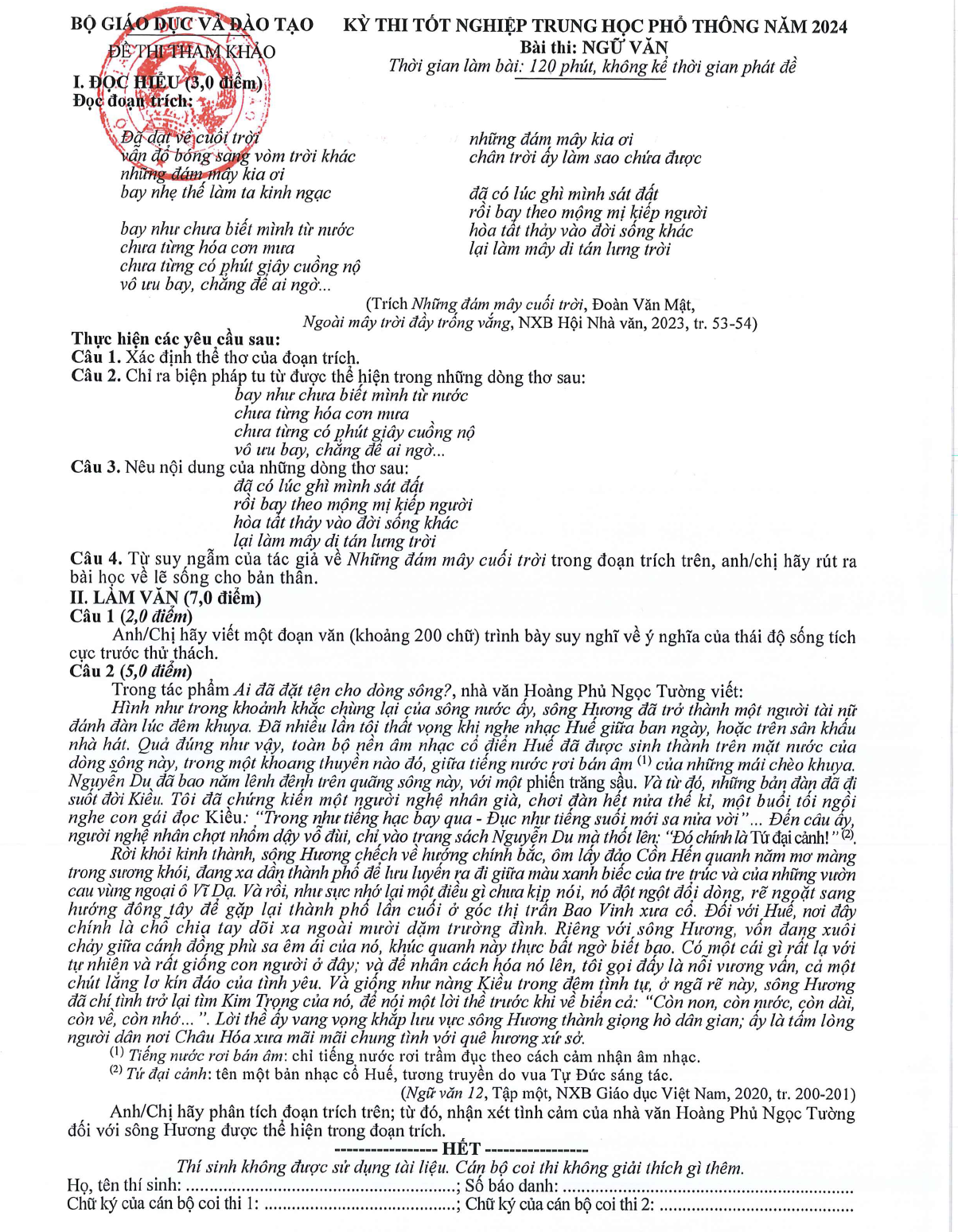 Đề tham khảo thi tốt nghiệp THPT môn Ngữ văn.