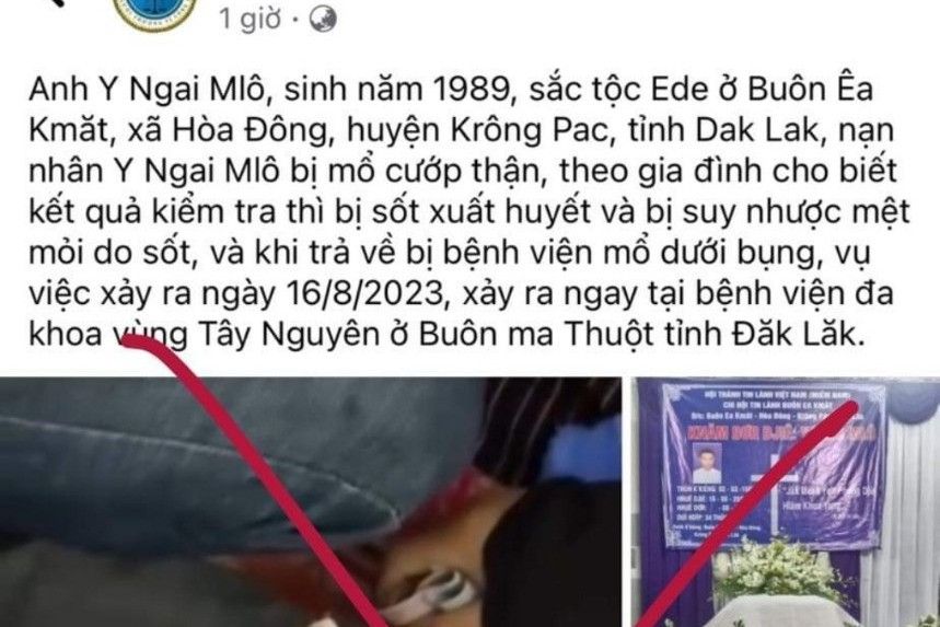 Tối 16/8, một tài khoản Facebook đăng tải thông tin, anh Y.N.M. (34 tuổi, ngụ buôn Ea Kmăt, xã Hòa Đông, huyện Krông Pắk, tỉnh Đắk Lắk) bị mổ cướp thận tại Bệnh viện Đa khoa tỉnh vùng Tây Nguyên (Buôn Ma Thuột).