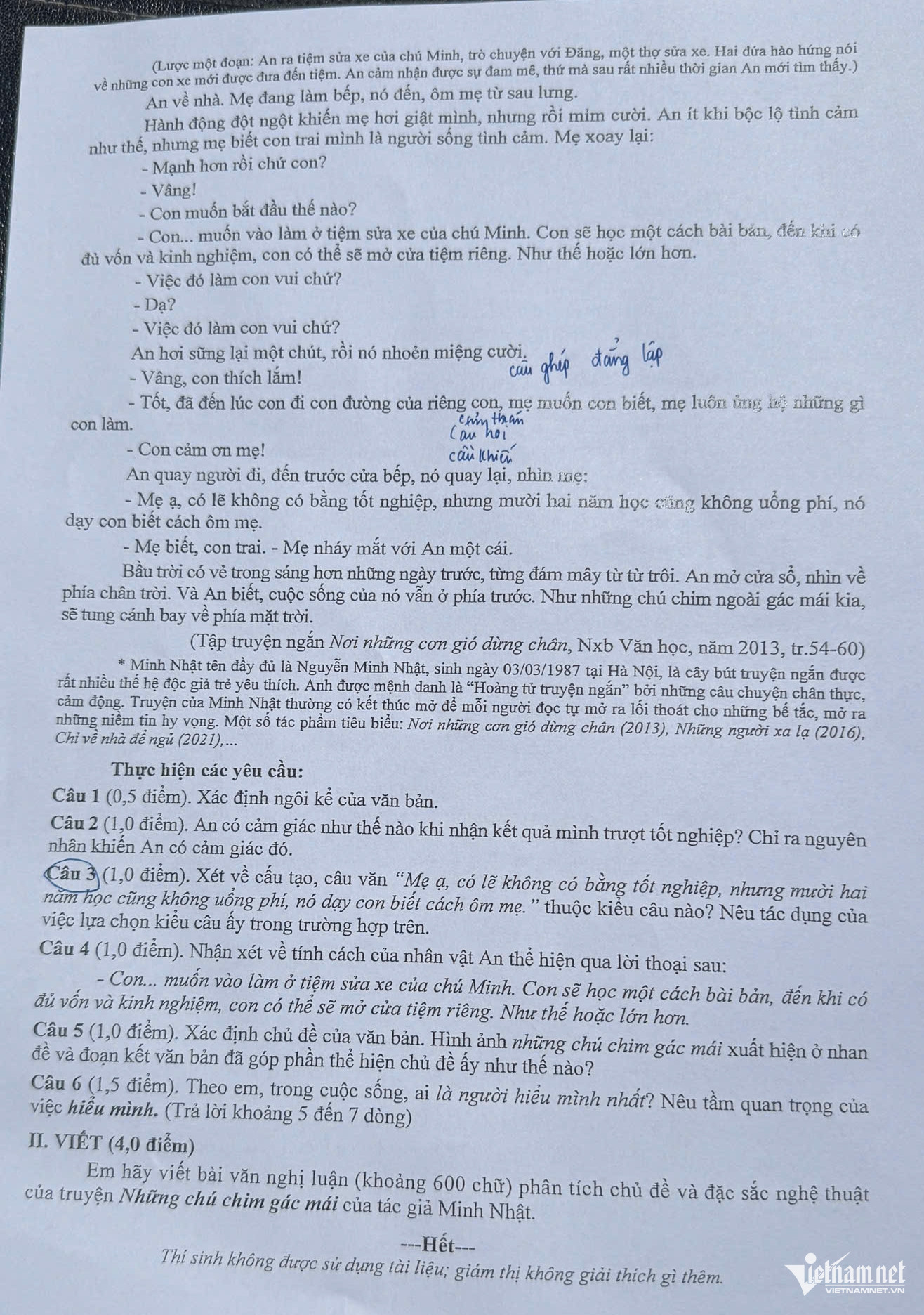 Dưới đây là đề thi môn Ngữ văn tại Đồng Nai với thời gian làm bài 120 phút: