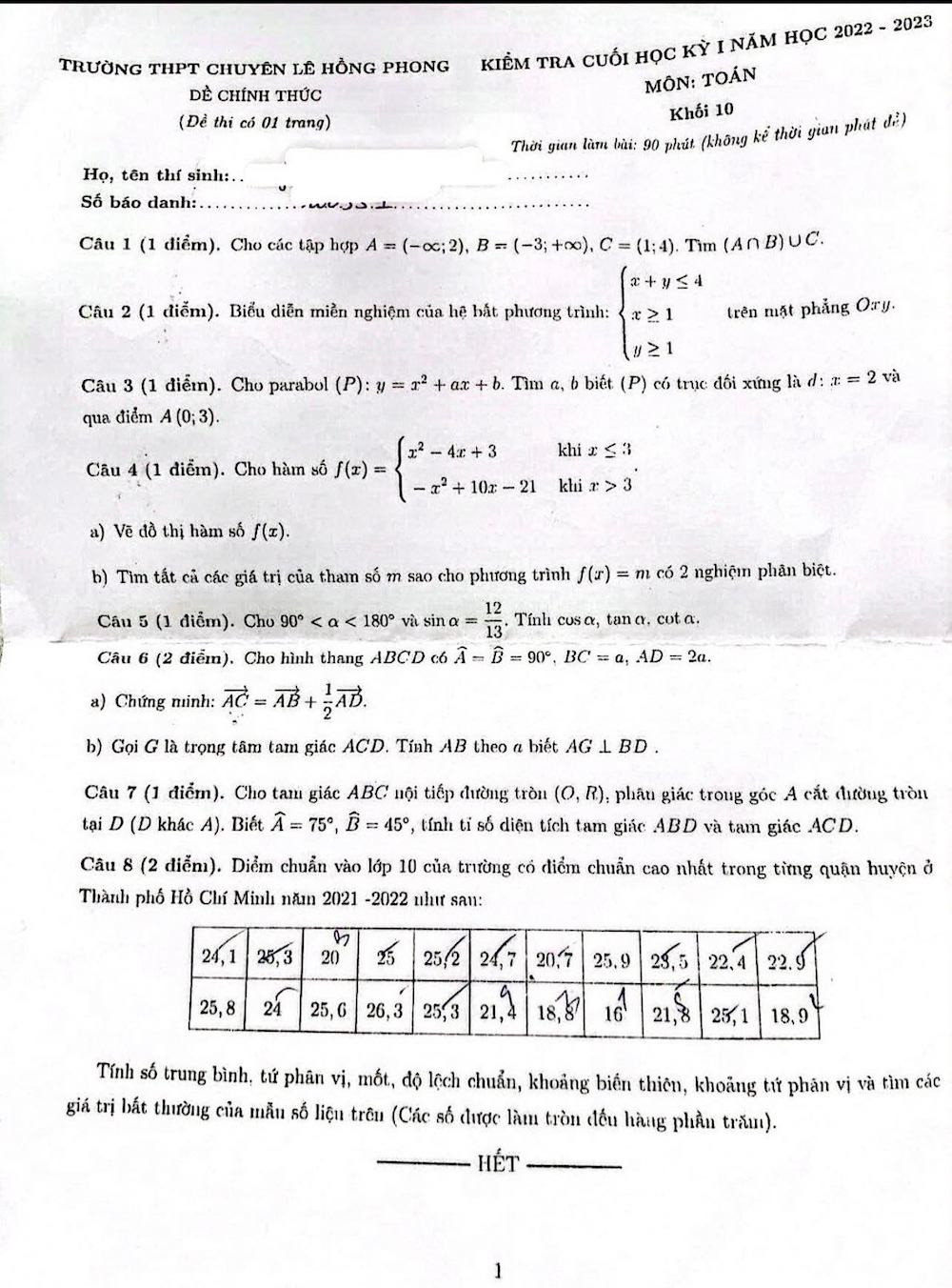 Học sinh lớp 10, Trường THPT Chuyên Lê Hồng Phong, TP.HCM vừa thực hiện bài kiểm tra học kỳ 1 môn Toán.