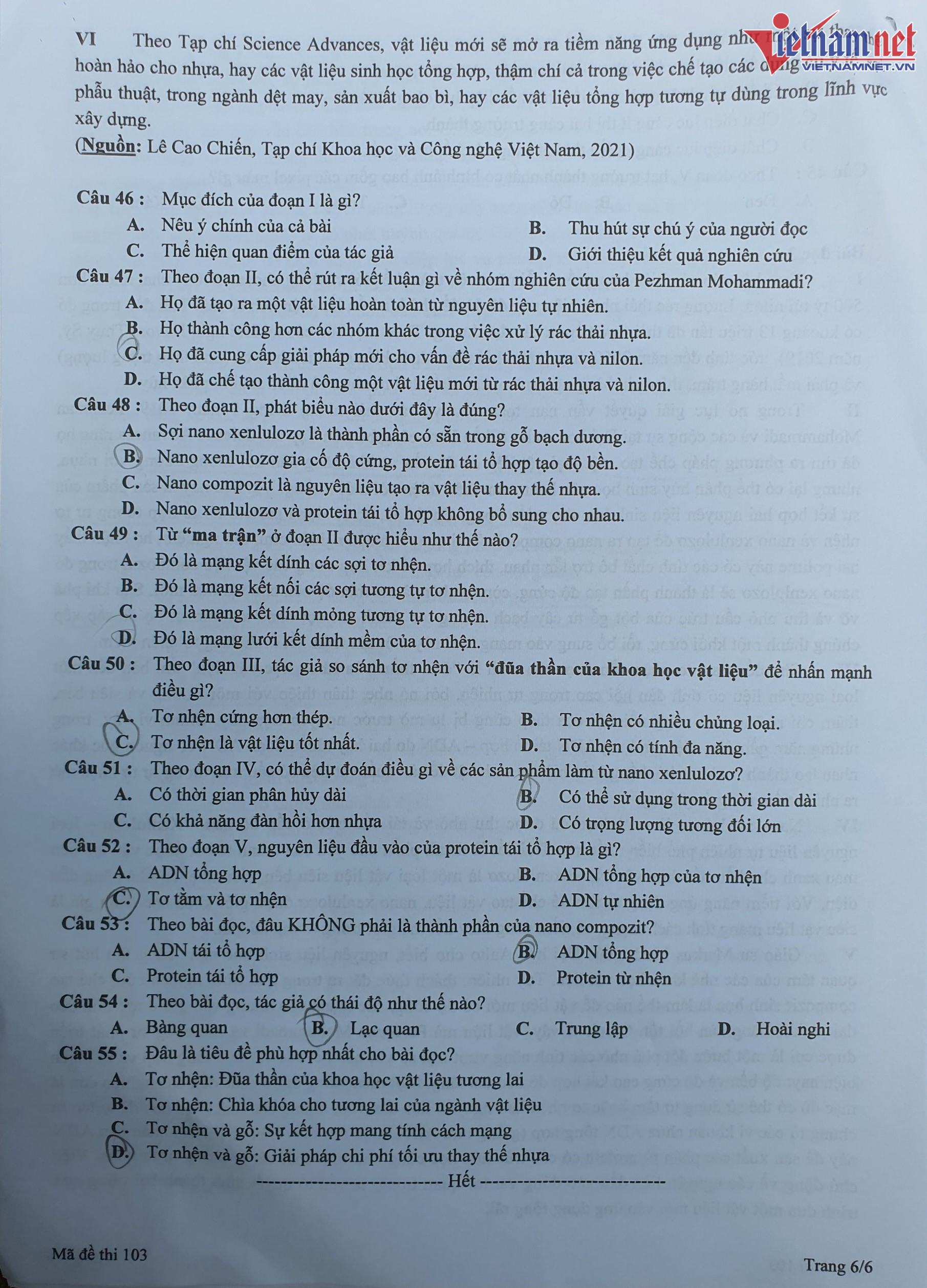 Đề thi đánh giá tư duy Trường ĐH Bách khoa Hà Nội 2022, phần Đọc hiểu: