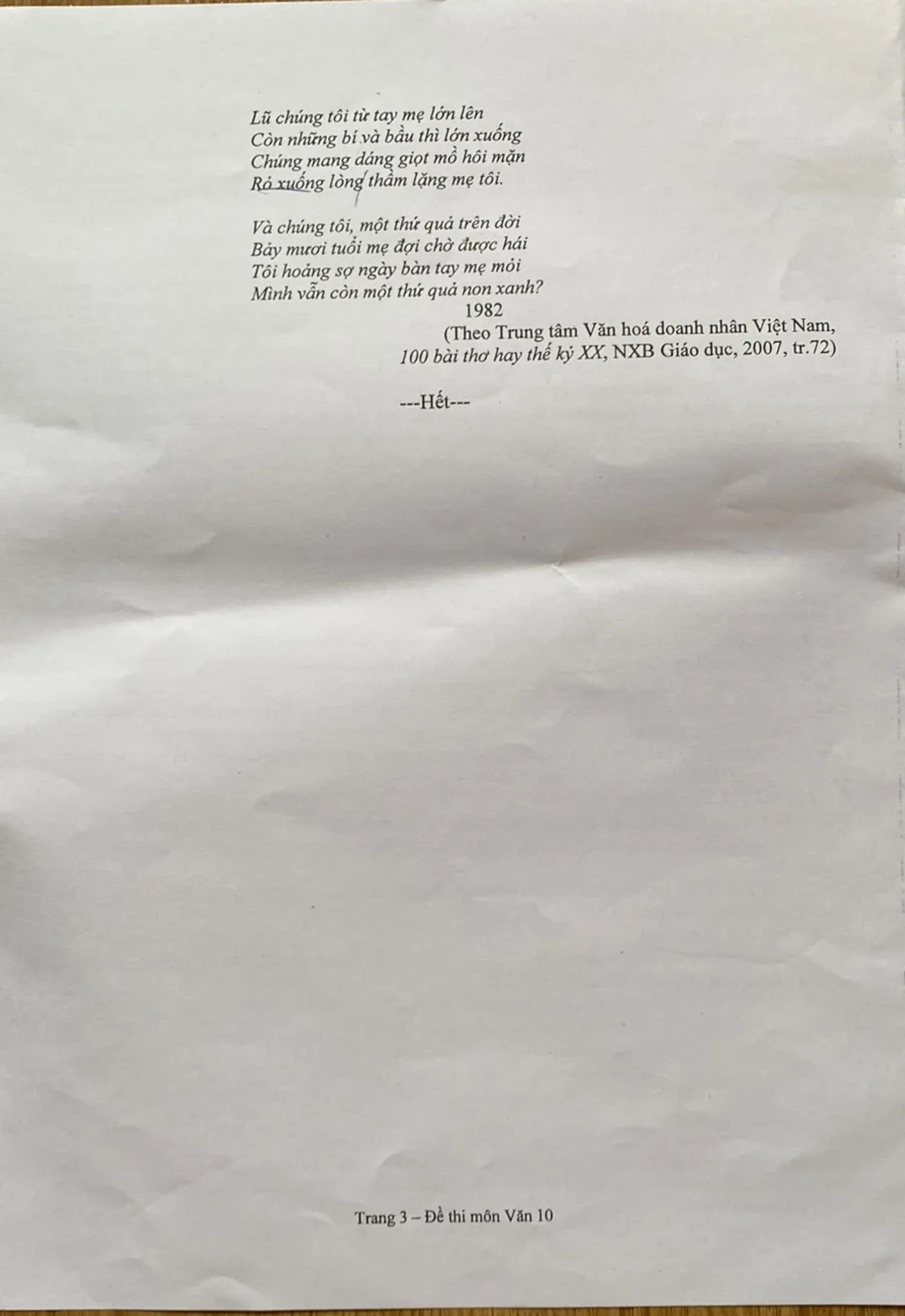 Đề kiểm tra Ngữ văn học kỳ II lớp 10 trường chuyên Lê Hồng Phong