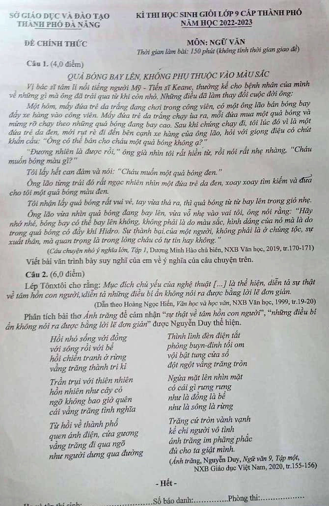 Dưới đây là đề thi học sinh giỏi môn Toán, Ngữ văn lớp 9 cấp thành phố vừa được TP Đà Nẵng tổ chức: