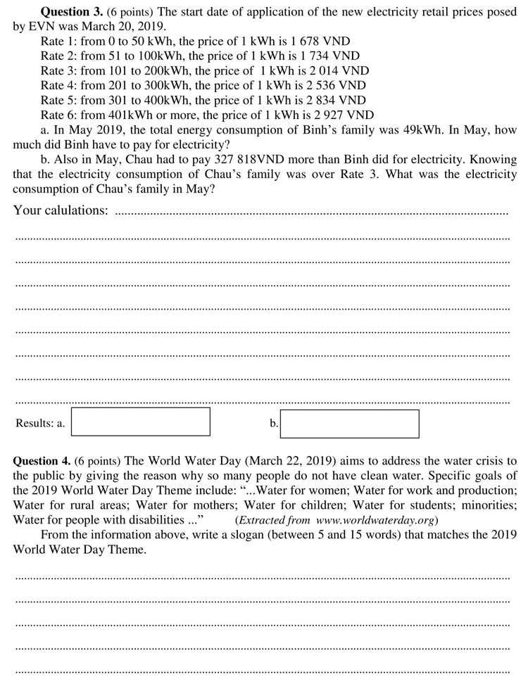 Đề và đáp án bài khảo sát tuyển sinh vào lớp 6 Trường THPT Chuyên Trần Đại Nghĩa năm 2019