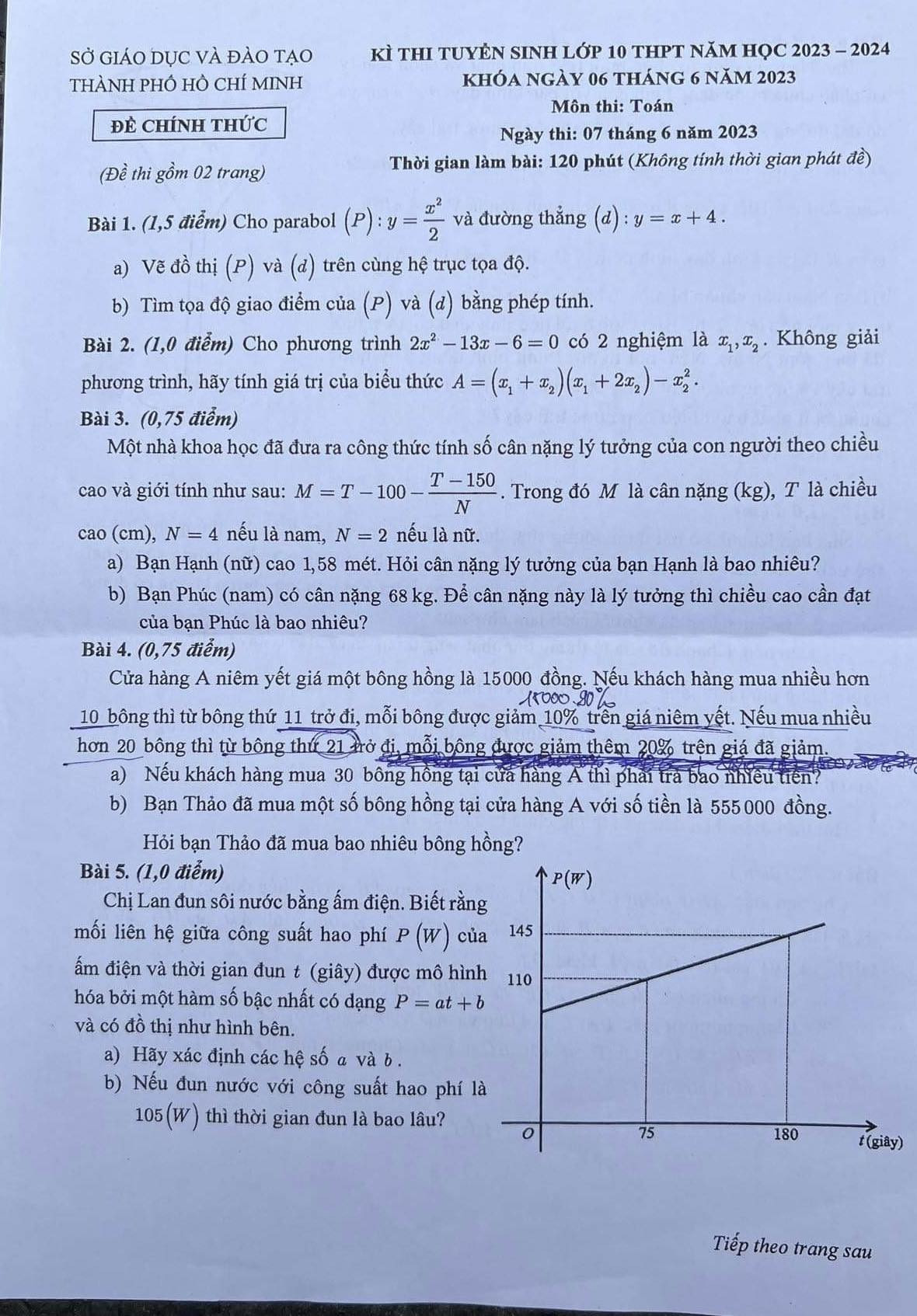 Đề thi môn Toán vào lớp 10 TP.HCM: