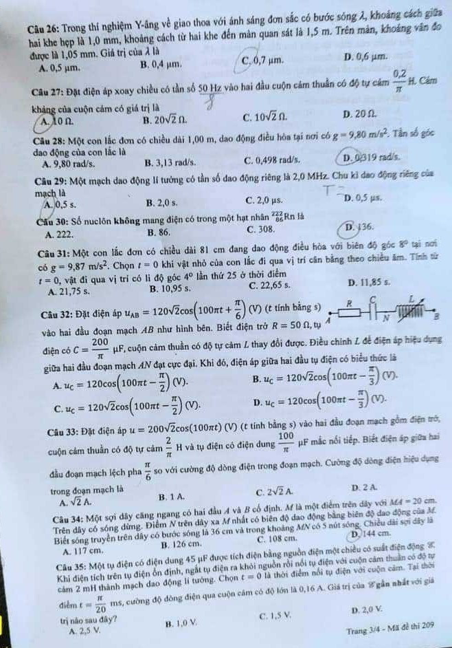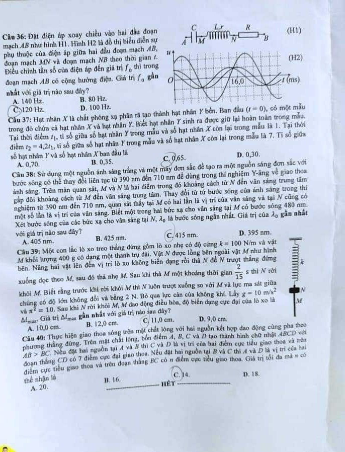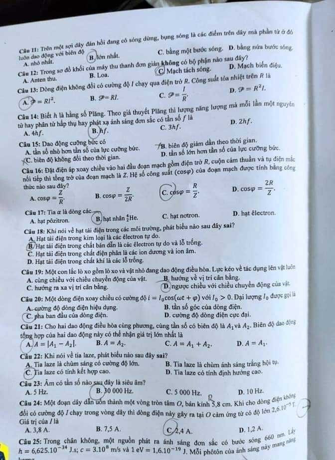 Đáp án tham khảo môn Vật lý thi tốt nghiệp THPT năm 2024 - 24 mã đề