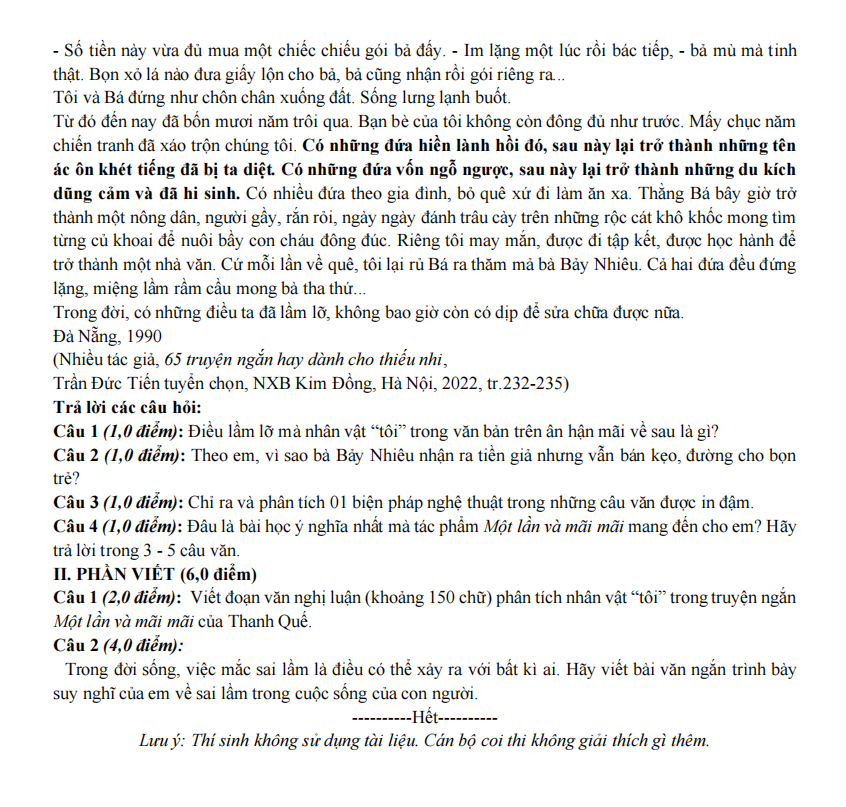 Dưới đây là đáp án và thang điểm chấm cho đề thi này: