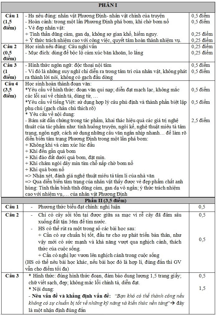 Dưới đây là thang điểm, đáp án của đề thi này: