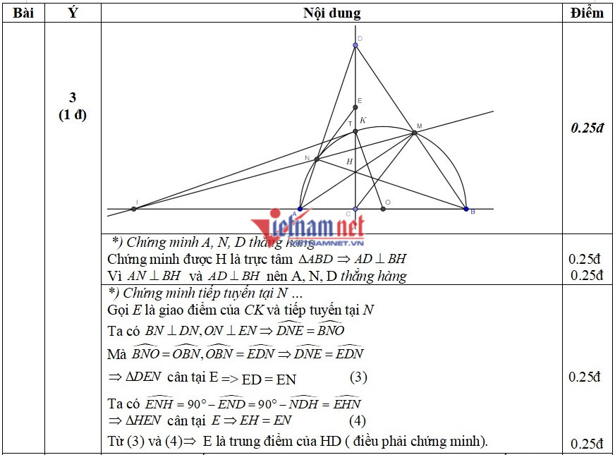 Đáp án của đề thi thử vào lớp 10 Hà Nội của Trường THCS Yên Sở như sau: