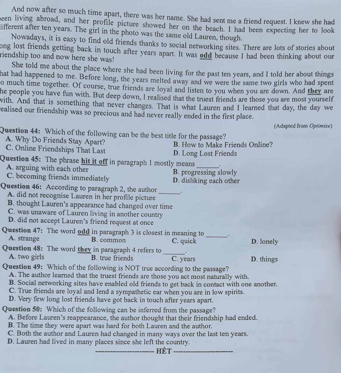 Dưới đây là đề thi tốt nghiệp THPT môn Tiếng Anh năm 2024: