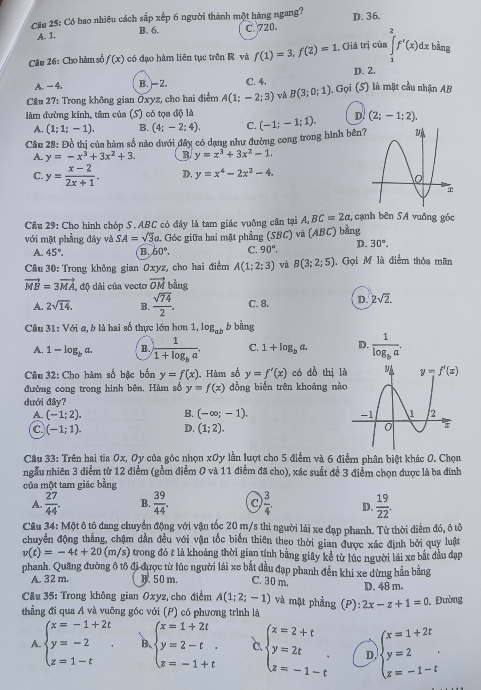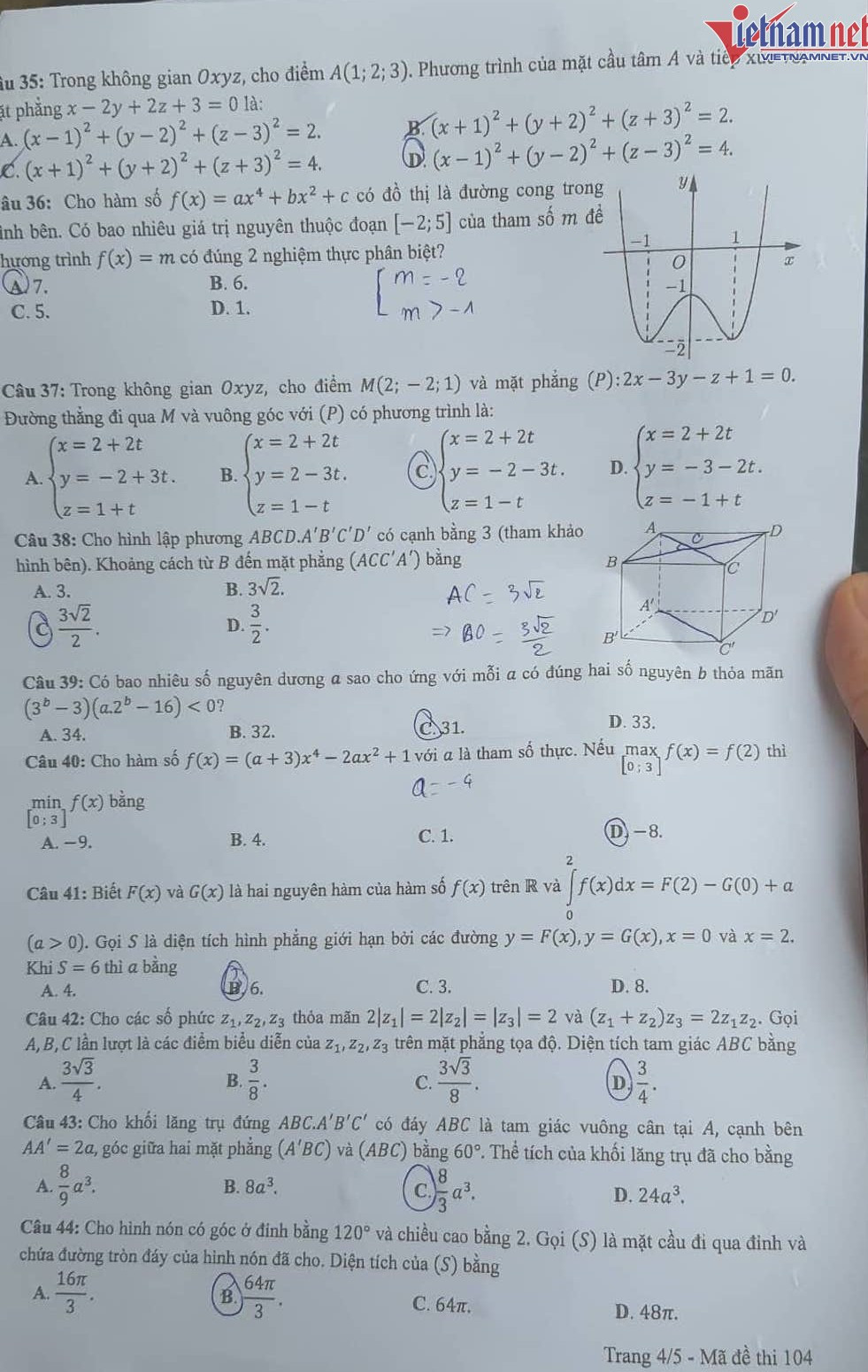 Dưới đây là đề thi tốt nghiệp THPT môn Toán năm 2024: