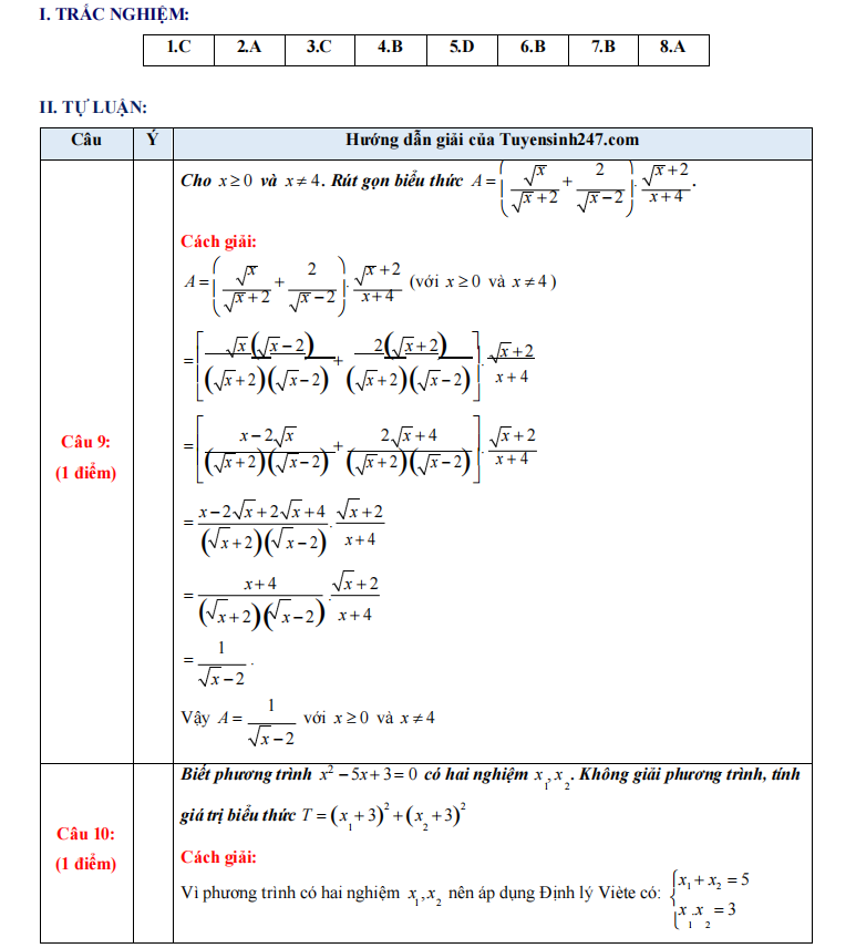 Dưới đây là đáp án tham khảo cho đề thi này được thực hiện bởi Tuyensinh247.com: