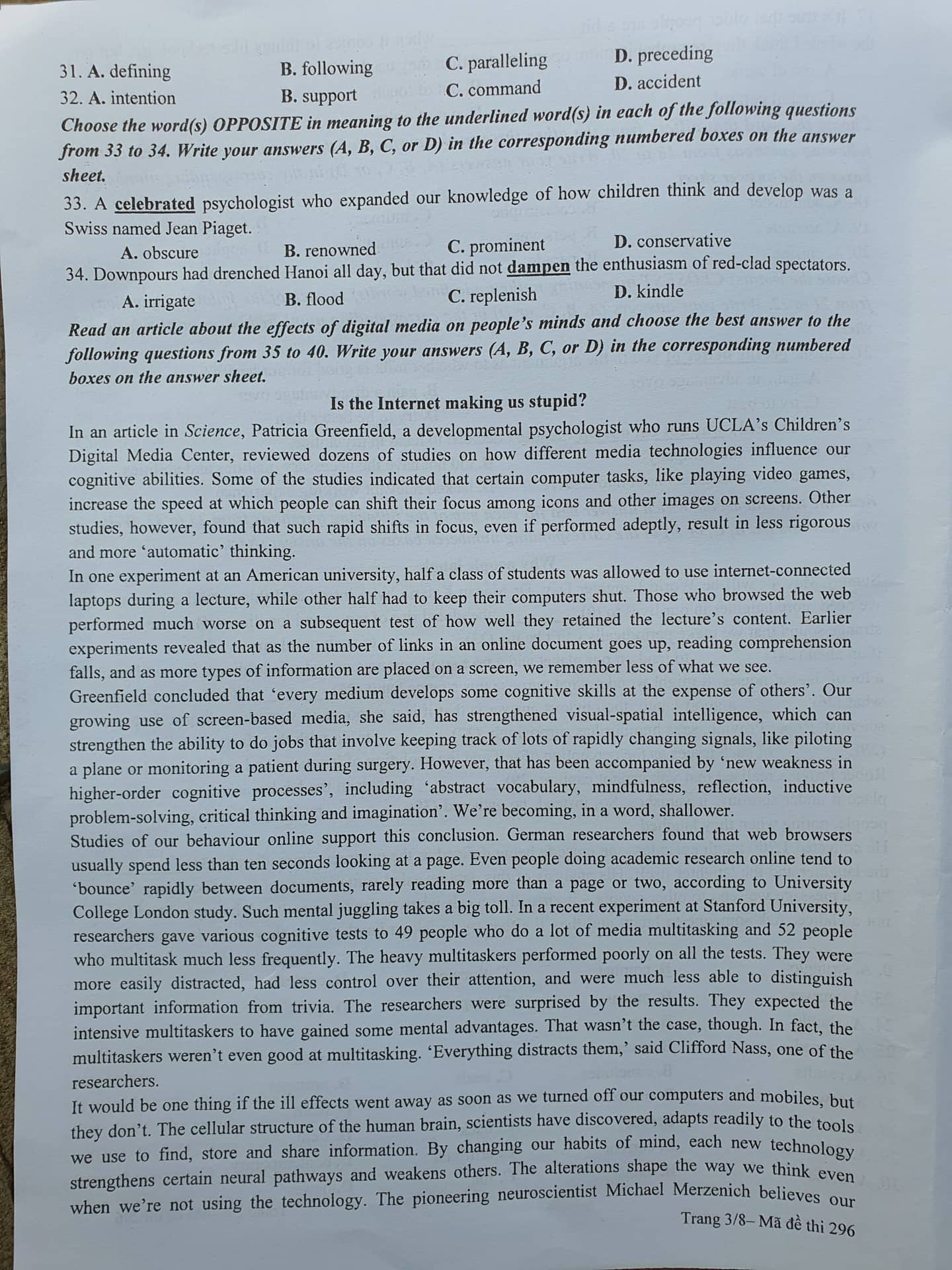 Dưới đây là đề thi môn Tiếng Anh dành cho các thí sinh thi vào vào lớp 10 hệ chuyên Tiếng Anh của Trường THPT Chuyên ĐH Sư phạm Hà Nội năm học 2022-2023 với thời gian làm bài 120 phút: