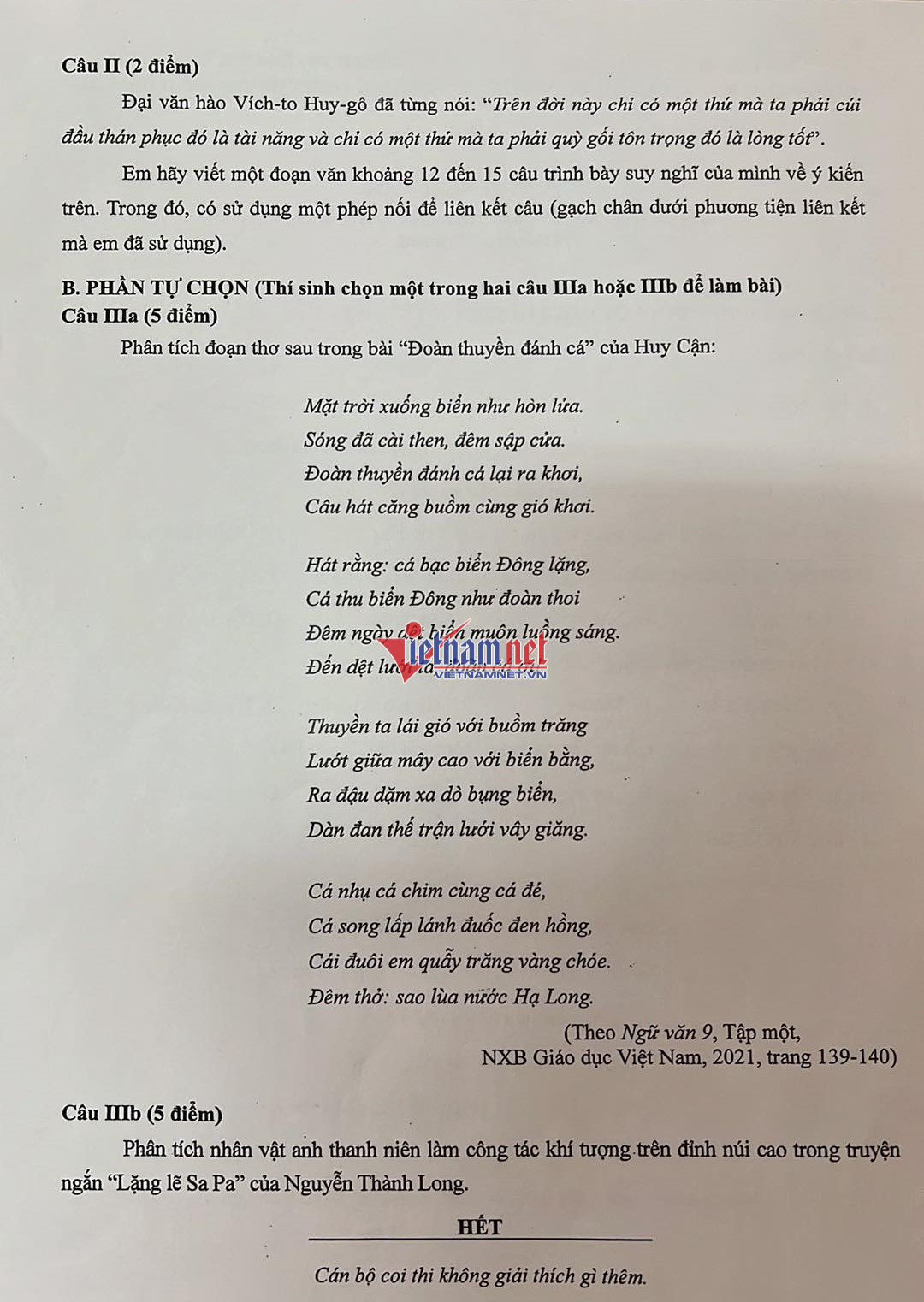 Dưới đây là đề thi môn Văn vào lớp 10 Trường THPT Chuyên Khoa học Tự nhiên 2022 trong thời gian 120 phút: