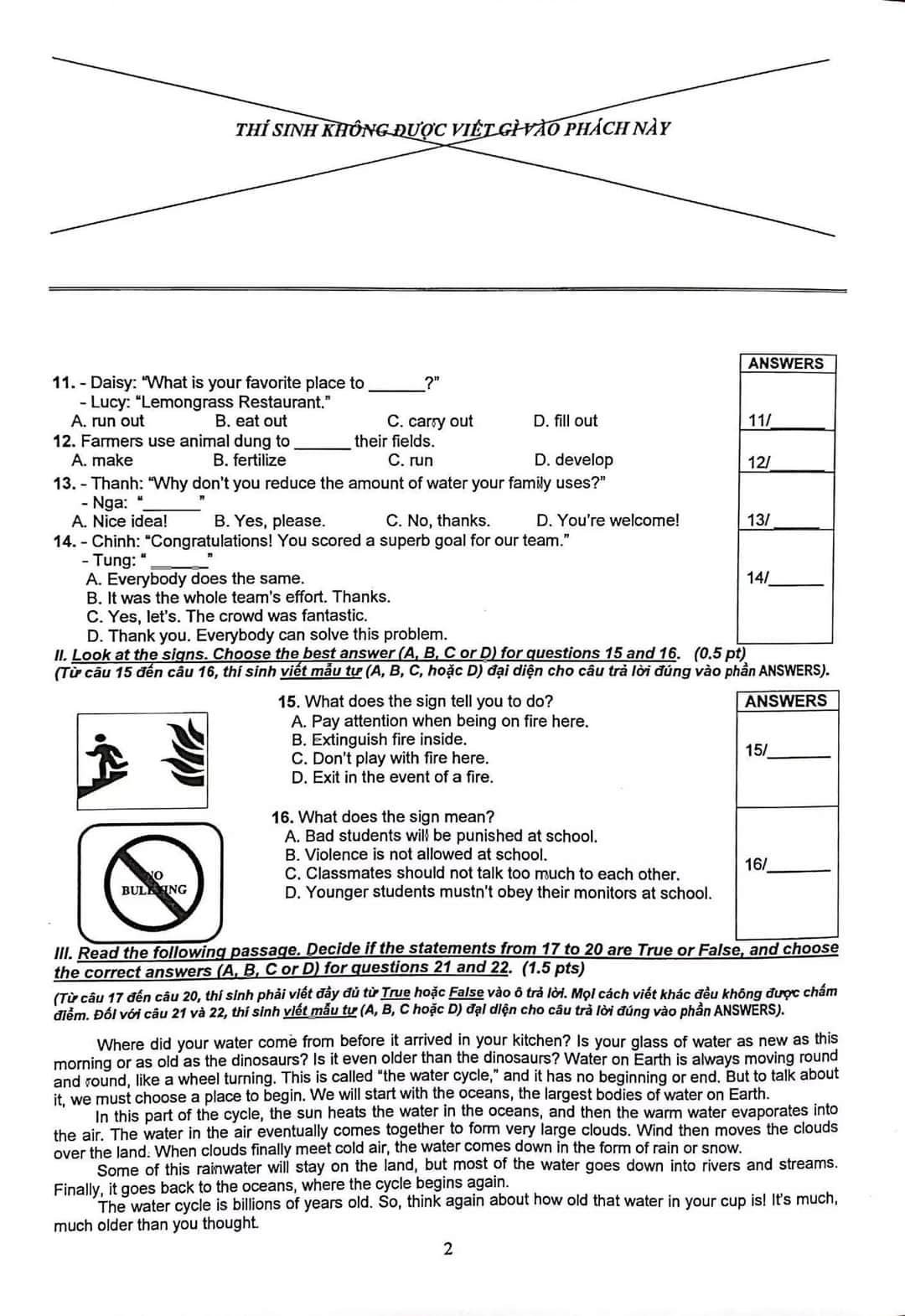 Đề thi môn Tiếng Anh lớp 10 của TP.HCM những năm gần đây như sau: