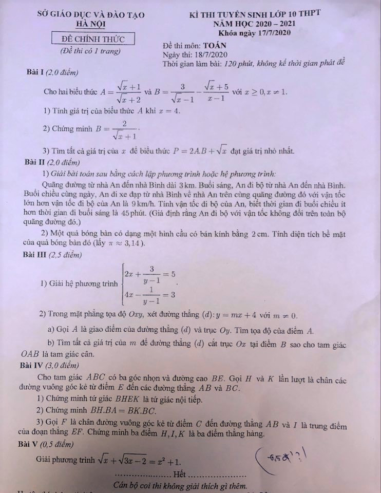 Đáp án gợi ý môn Toán thi lớp 10 ở Hà Nội năm 2023