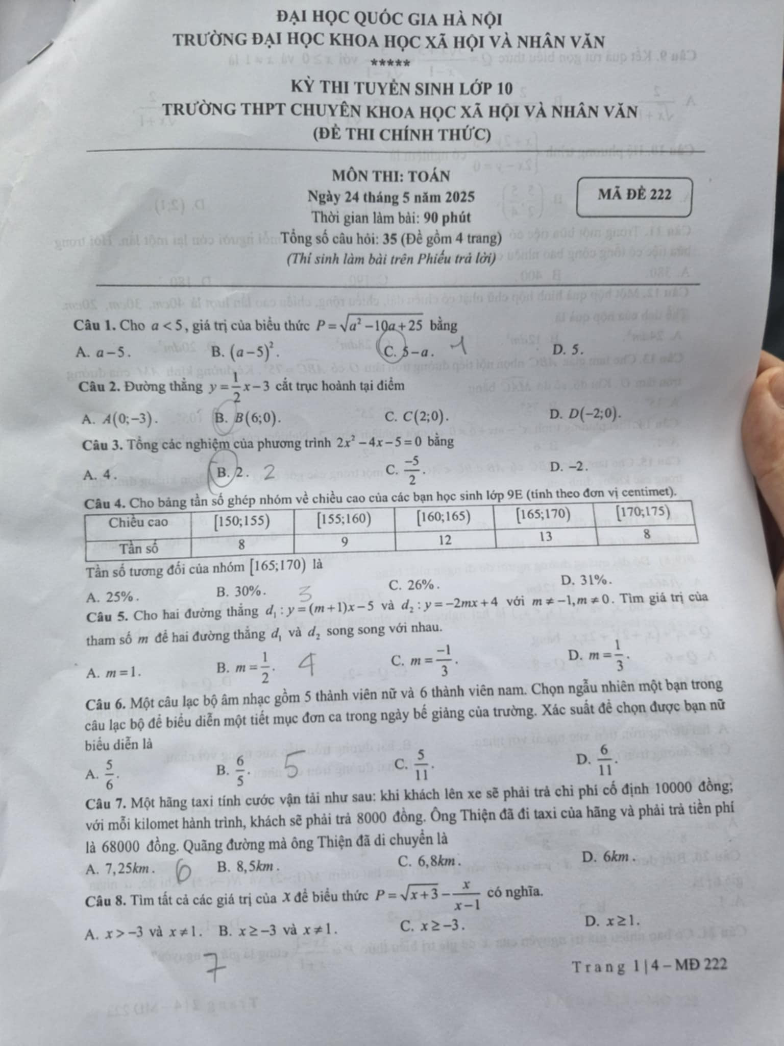 Cụ thể, đề Toán thi vào lớp 10 Trường THPT Chuyên Khoa học Xã hội và Nhân văn - ĐHQGHN năm 2025 với thời gian làm bài 90 phút như sau:
