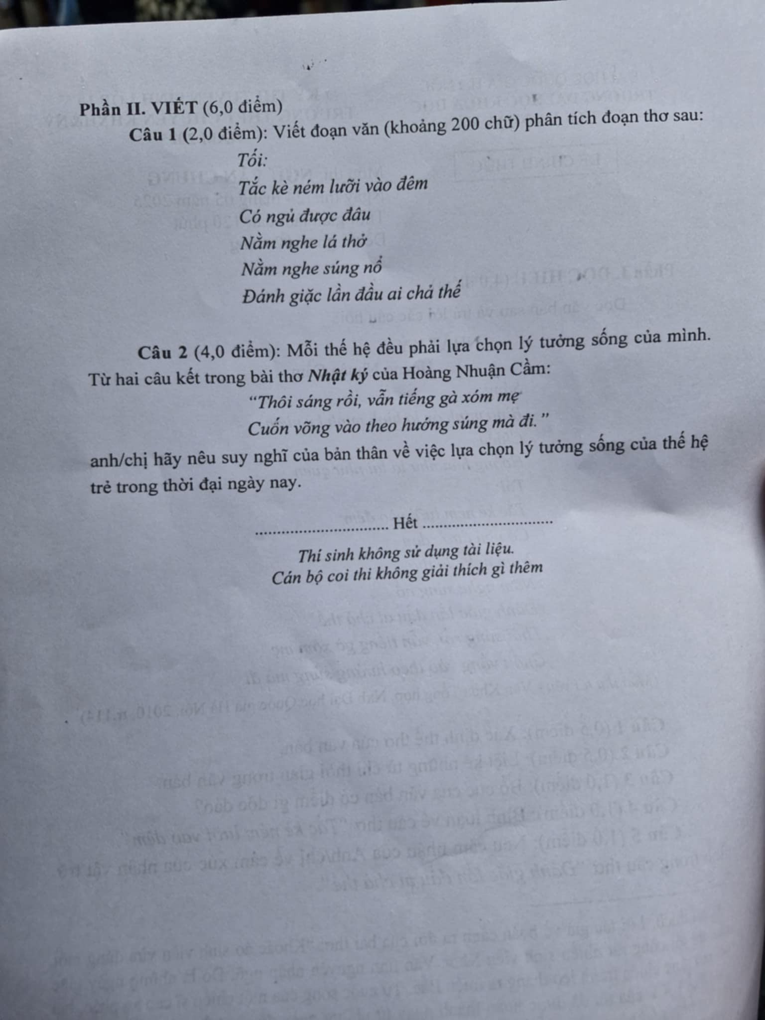 Cụ thể, đề Văn thi vào lớp 10 Trường THPT Chuyên Khoa học Xã hội và Nhân văn - ĐHQGHN năm 2025 với thời gian làm bài 120 phút như sau: